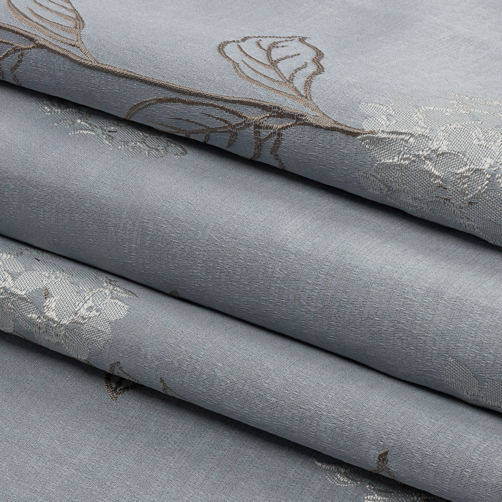 See flowers bloom under a clear spring sky with this British Imported Hydrangea Stems Drapery Jacquard. A slick ice-blue base is host to voluminous white flowers growing on tall gray stems. The Jacquard weave provides an embroidery-like feel, a malleable drape, and slight luster. Create elegant drapes, long, pooling curtains, dramatic swags, and more. Opaque, a lining isn't necessary for most projects.
