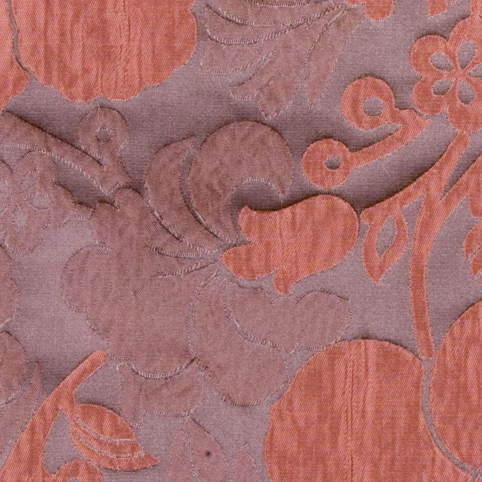 This is a polyester high relief floral brocade in driftwood and terracotta. Medium weight, good for drapes.