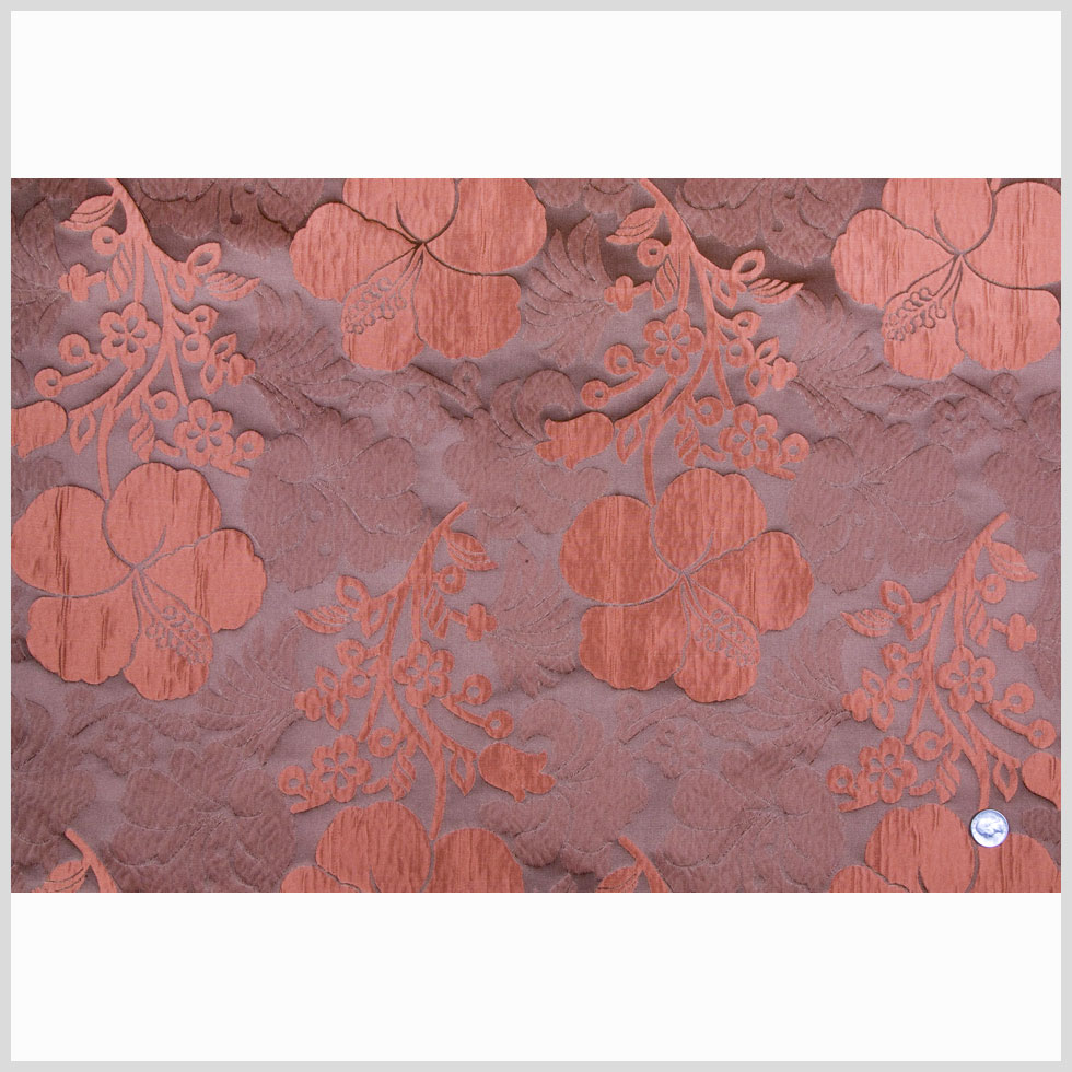 This is a polyester high relief floral brocade in driftwood and terracotta.