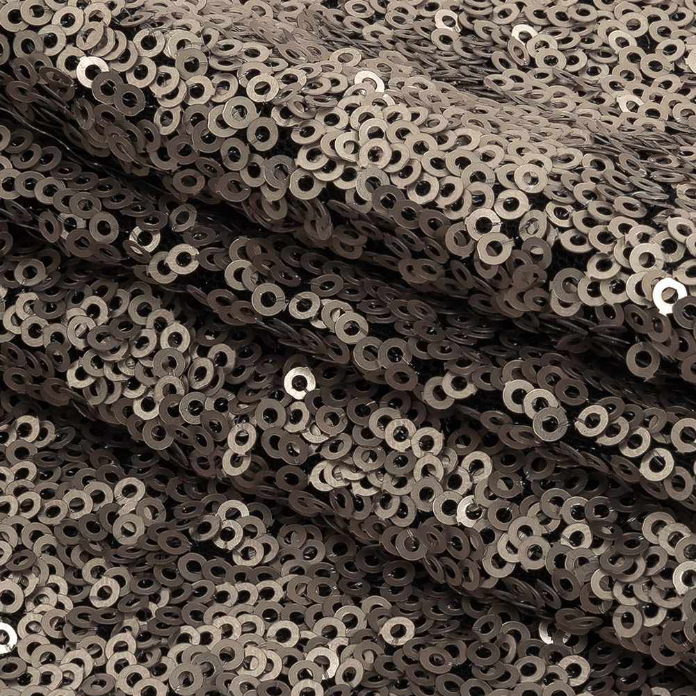 Dull-Polished Silver All-Over Baby Sequins on Black Mesh