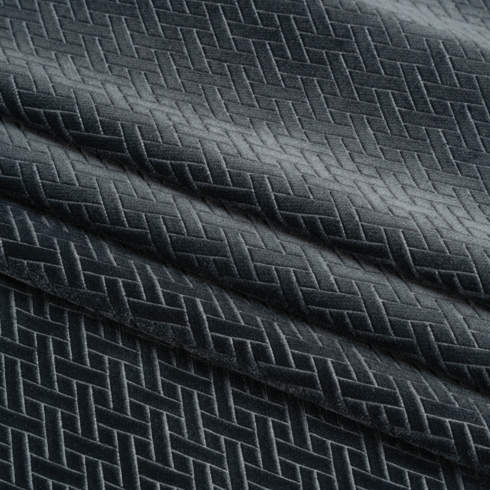 A luxurious dream for the senses, this Gray Embossed Polyester Velvet features a plush hand, fluid drape, and light weight—perfect for stunning evening attire.Suggested Projects: Dresses, Skirts, Pants, TopsContent: 100% PolyesterStretch: NoneOpacity: OpaqueA storm gray woven lattice embossing creates a plush yet tactile hand on this short-pile polyester velvet. Bring sophistication into your wardrobe with its subtle luster and fluid drape, a light weight making it flow with your every movement. Envision dreamy nights at black-tie events in a floor-length evening dress, or perhaps a just-as-enticing night at home in a luxe pajama set. Opaque, a lining is not needed in most applications.
