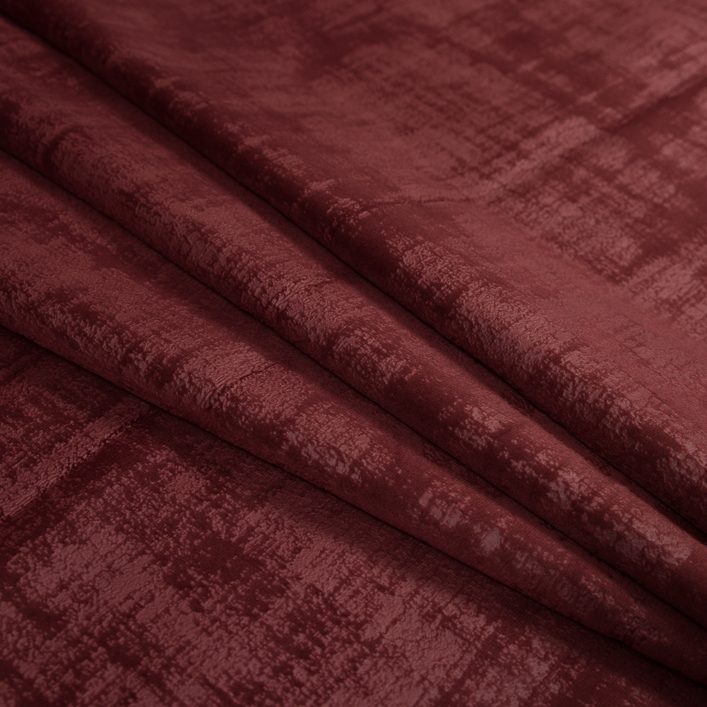 A rich vintage tone to give your home a classic look, check out this British Imported Claret Embossed Textured Velvet! The ultra soft velvet has a beautiful sheen that showcases an abstract embossed pattern throughout.