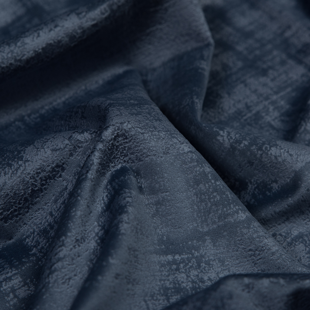 A classic blue, create an Americana decor theme with this British Imported Denim Embossed Textured Velvet. The ultra soft velvet has a beautiful sheen that showcases an abstract embossed pattern throughout. From upholstery to drapery applications, fill your home with tactile delight. From couches to ottomans to full-length drapes, add it to living spaces, bedrooms, and dining rooms. Thin with a heavy weight, note that the velvet is completely opaque. This stunning collection comes in 32+ colors, so you are sure to find one that suits your decor theme! Note that these products take upwards of a week to process and ship. This fabric in particular can be machine washed on cold and ironed on the lowest heat setting. Do not bleach or tumble dry this material. This fabric can be dry cleaned with any solvent except tetrachlorethylene.