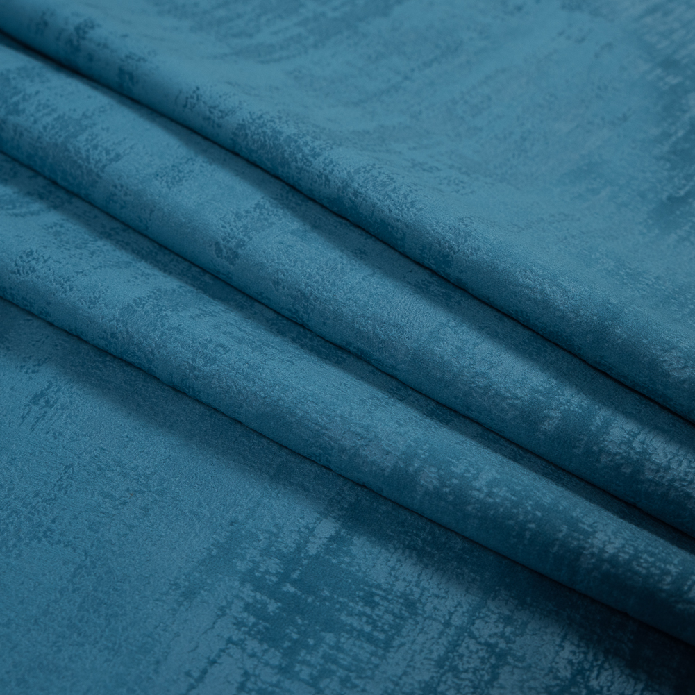 Perfect for sea themed homes, check out this British Imported Marine Embossed Textured Velvet. The ultra soft velvet has a beautiful sheen that showcases an abstract embossed pattern throughout. From upholstery to drapery applications, fill your home with tactile delight. From couches to ottomans to full-length drapes, add it to living spaces, bedrooms, and dining rooms. Thin with a heavy weight, note that the velvet is completely opaque. This stunning collection comes in 32+ colors, so you are sure to find one that suits your decor theme! Note that these products take upwards of a week to process and ship. This fabric in particular can be machine washed on cold and ironed on the lowest heat setting. Do not bleach or tumble dry this material. This fabric can be dry cleaned with any solvent except tetrachlorethylene.