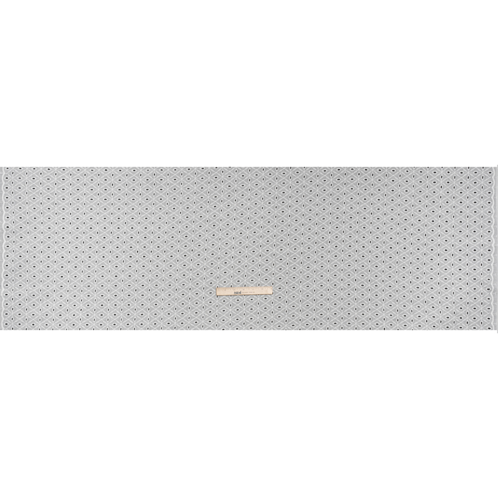Embroidered Eyelet Cotton Voile – White Ovals in Diamonds – Naomi Collection