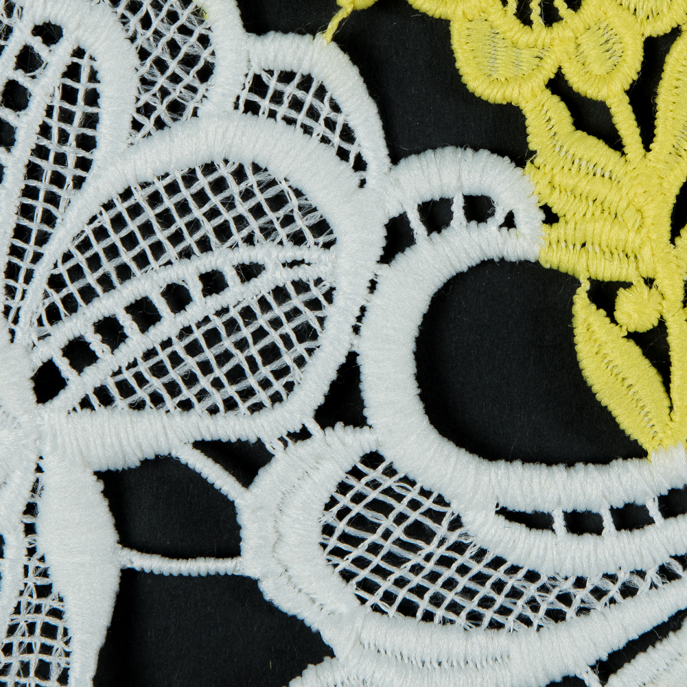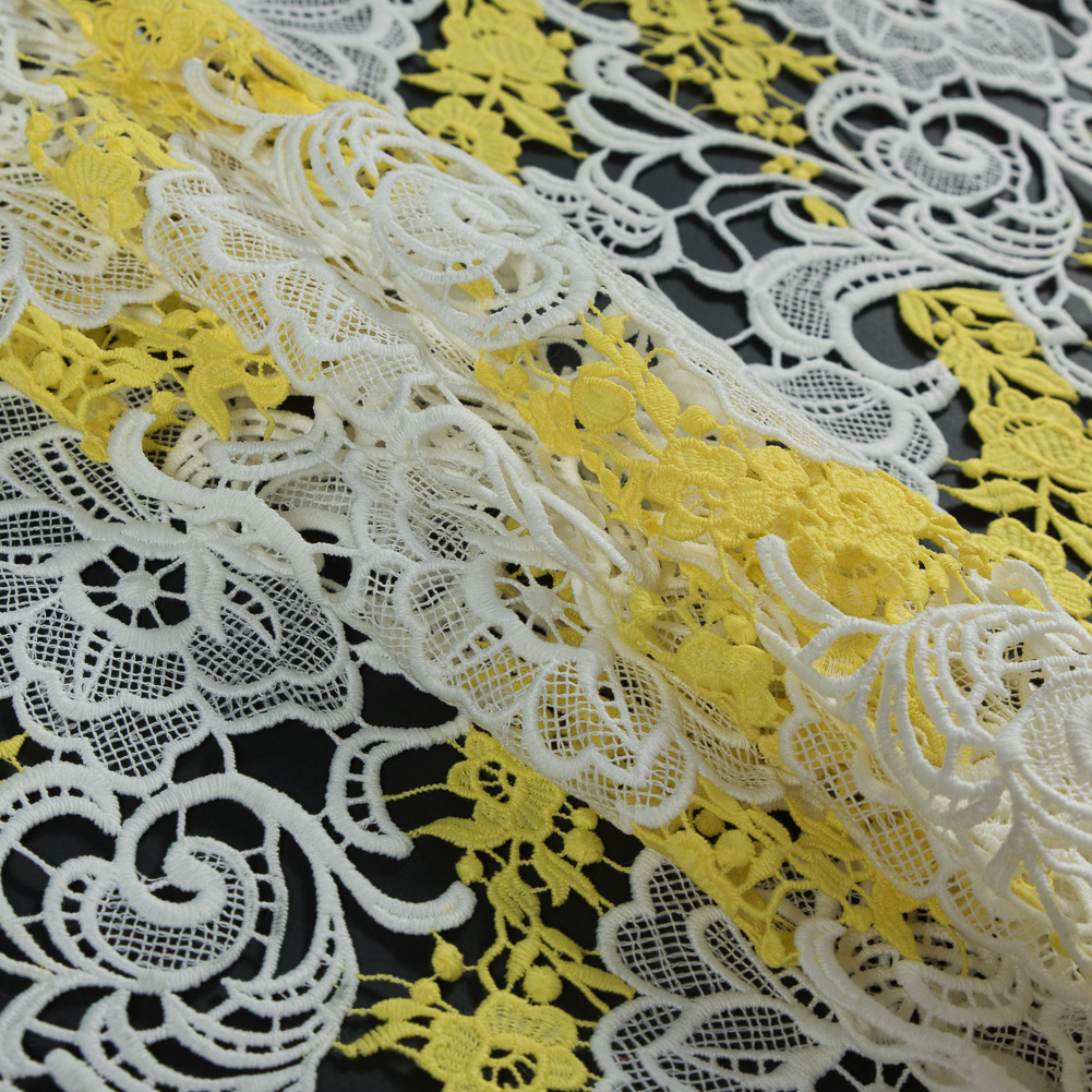 Embroidered Guipure Lace - White and Yellow Floral