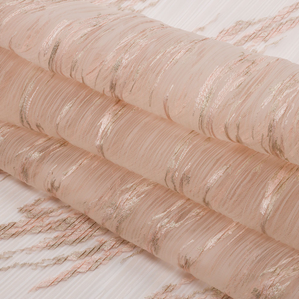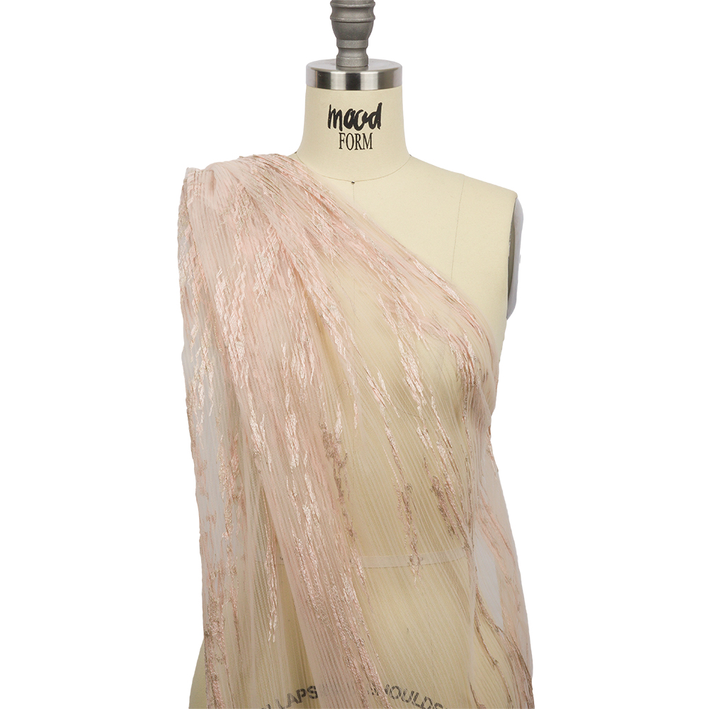 Texture and detail are all yours with this Linden Blush Abstract Embroidered Soft Pleated Tulle with Clear Baby Sequins.