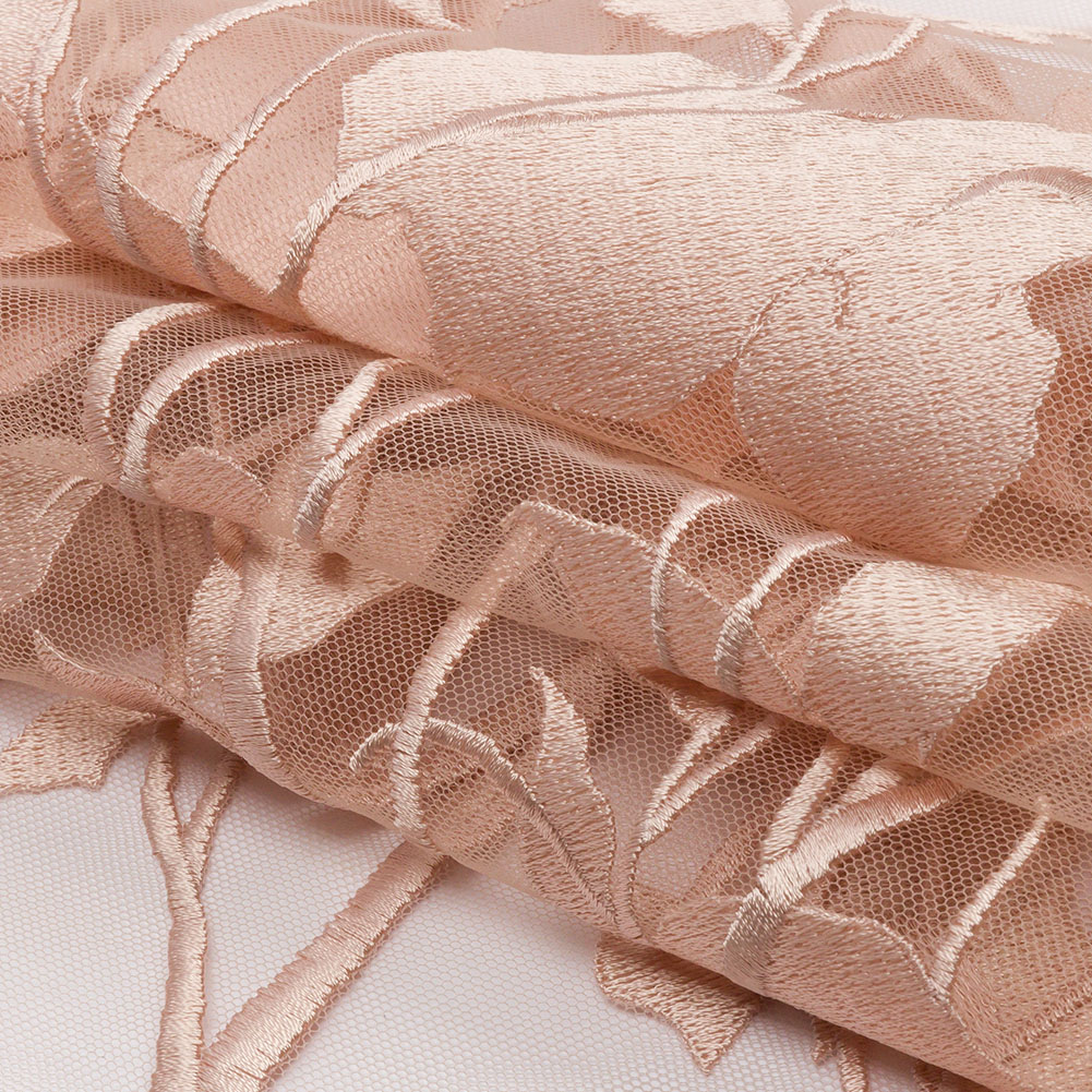 Embroidered Tulle Lace - Nude Leafy Branches - Magnolia Collection