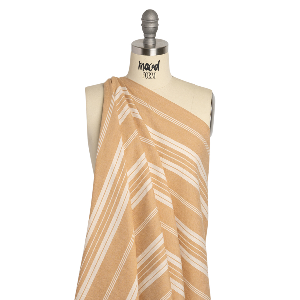 The forecast calls for sunshine and style, and this Famous Australian Designer Beige and Cream Ticking Stripes Soft Cotton and Linen Woven has come prepared. Blended with linen and cotton, the soft and pebbly hand feels less raw than your typical linen while still boasting subtle slubbing throughout the beige and cream striped face. The malleable drape calls for shift dresses, tailored blazers, and loose shorts to keep you cool and stylish in the heat.