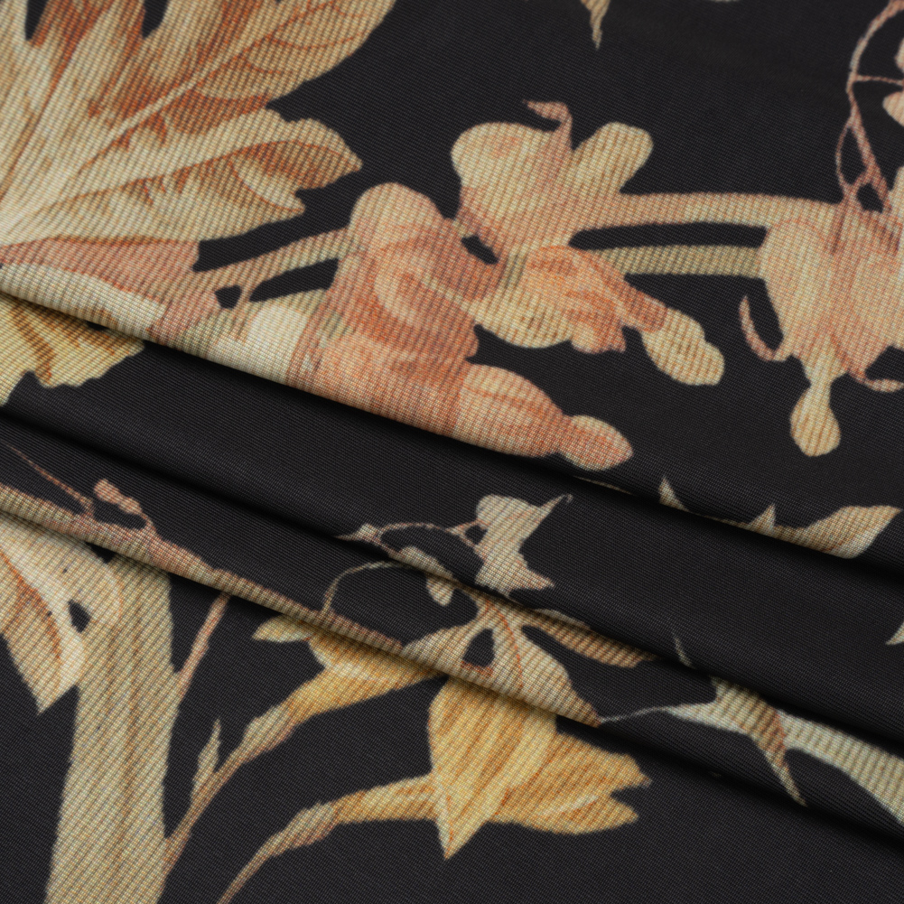 Famous Australian Designer Black and Beige Floral Stretch Polyester Jersey
