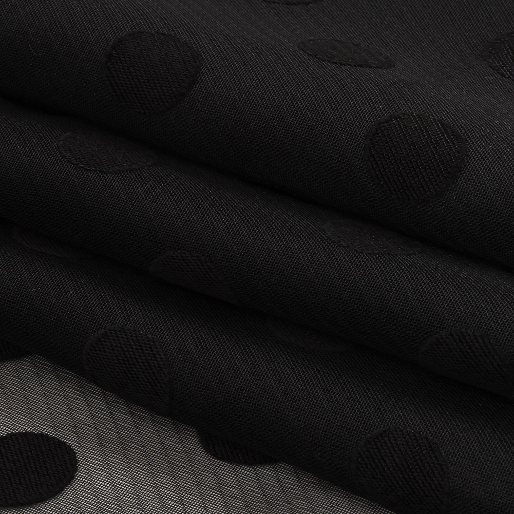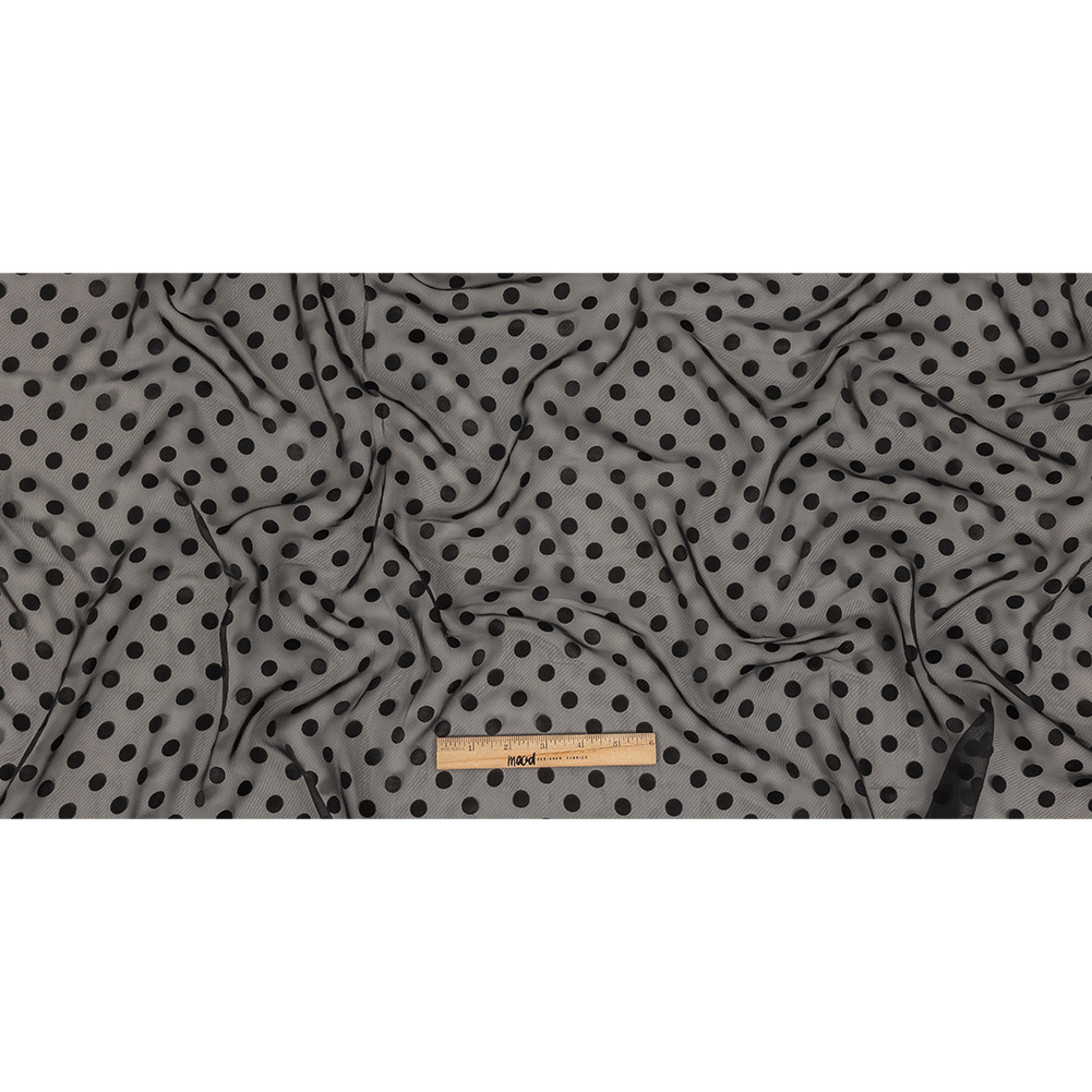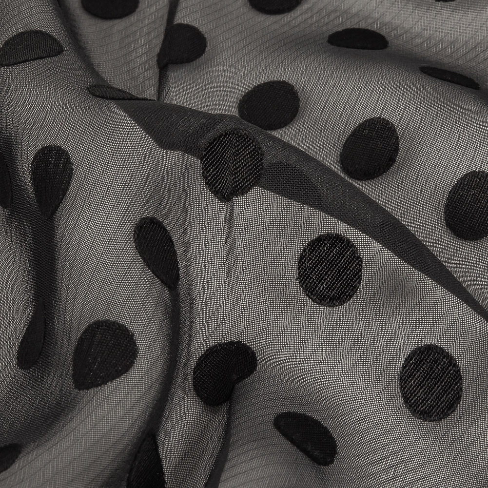 Famous Australian Designer Black Polyester Chiffon with Satin Burnout Polka Dots