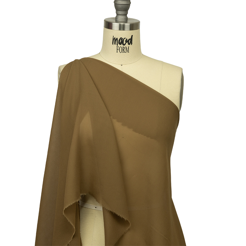 Combine glamor with rustic charm, thanks to this Breen Viscose Georgette! Featuring an olive tan shade, the combination of a pebbly, airy georgette weave and cool viscose fibers create a must-have material.