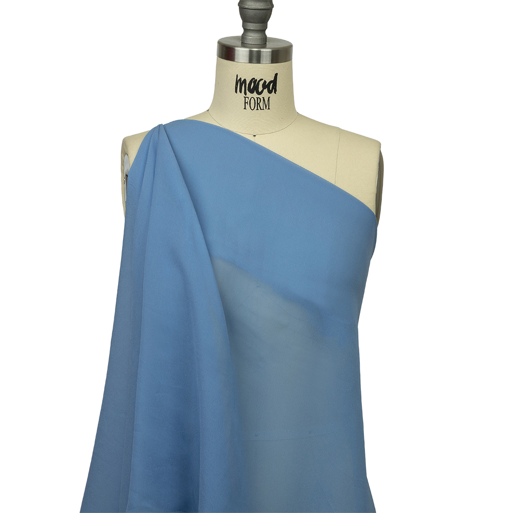 Make sure your wardrobe is packed with cottagecore clothes, thanks to this Cornflower Viscose Georgette! A cornflower blue color is enhanced by an airy, fluid drape and pebbly hand.