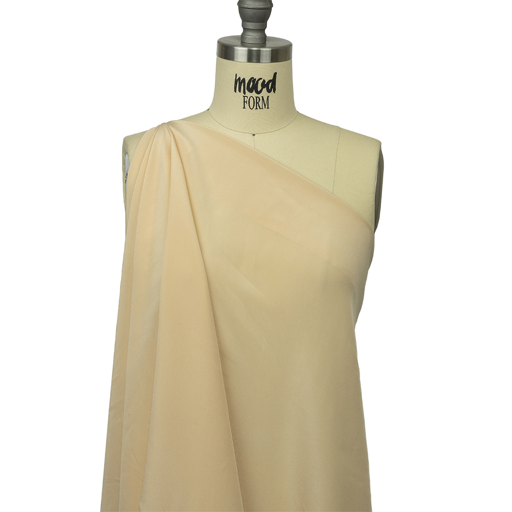 Neutralize your creamy crepe cravings with this Famous Australian Designer Cream Polyester Crepe de Chine! In a creamy beige hue, this material offers a pebbly texture and a malleable, airy drape.