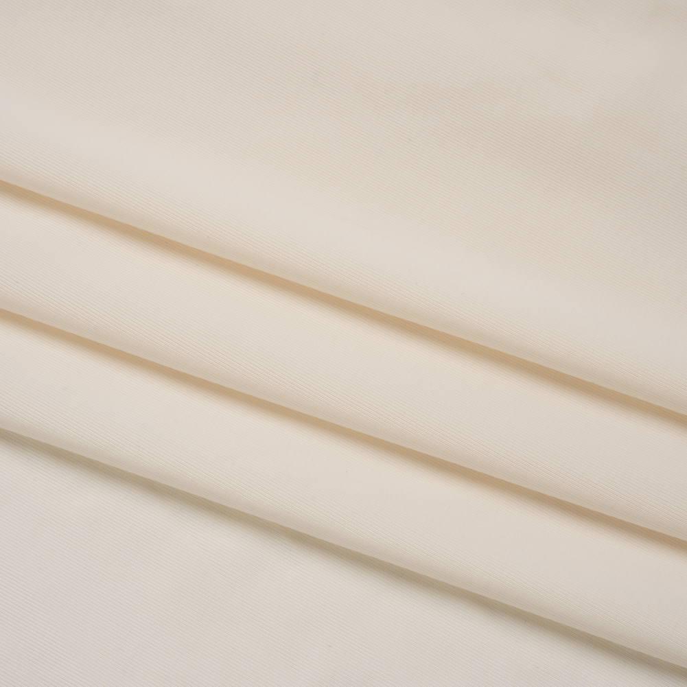 Rest, relax, repeat in this Famous Australian Designer Cream Stretch Polyester Jersey! A simple cream coloration makes this lustrous fabric a fashion go-to, featuring a subtle sheen and a fluid drape. Its silky-smooth face hugs your skin with a 50% all-way stretch, allowing for maximum comfort as you chill in baby tees or party in ruched bodycon dresses. Transparent, we suggest a lining to bring opacity to projects.