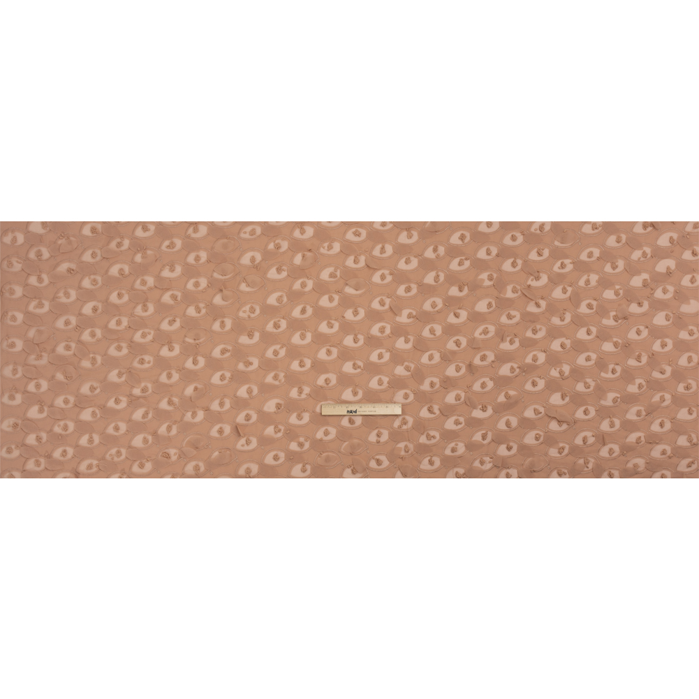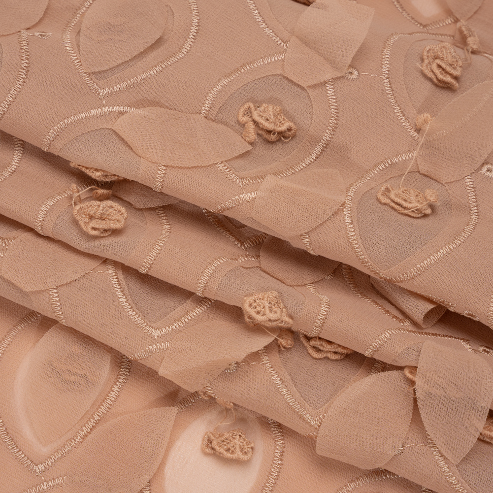 This Famous Australian Designer Dusty Clay 3D Floral Embroidered Double Layer Polyester Georgette with Leaf Cutouts promises a night you’ll remember in an outfit you’ll never forget. A dusty rose base, adorned with intricately embroidered leaves, unveils its charm through a double-layered georgette that yields a pebbled hand. The top layer of each leaf peels back to reveal a 3-D, embroidered flower in the center, teaming up with a supple drape to create a dynamic fabric with a mesmerizing personality. Eye-catching designs are thus at your fingertips; from skirt overlays to evening gowns, this fabric keeps you looking classy at formal occasions while leaving room for your creativity to shine. Semi-sheer, a lining may be desired depending on the application.