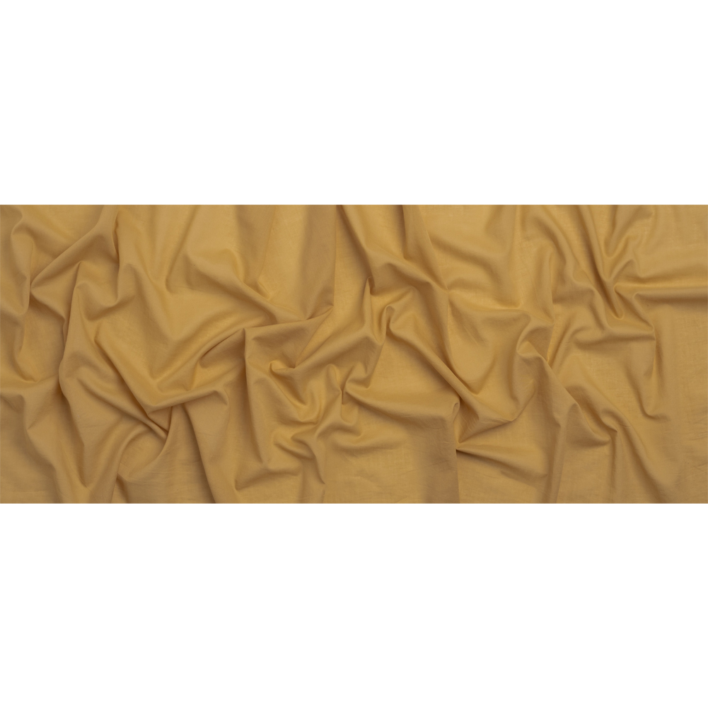 We've struck designer gold with this Famous Australian Designer Gold Cotton Voile! Derived from the French word for veil, voile has a history of gracing romantic occasions with its sheer delicacy and airy drape. Made of 100% cotton, this mustard yellow voile has a dry, gauze-like hand that gives off an organic feel, exploring the space between elegance and simplicity with garments ranging from bridesmaid dresses and tiered skirts to scarves and lingerie. A lining may be desired depending on the project.