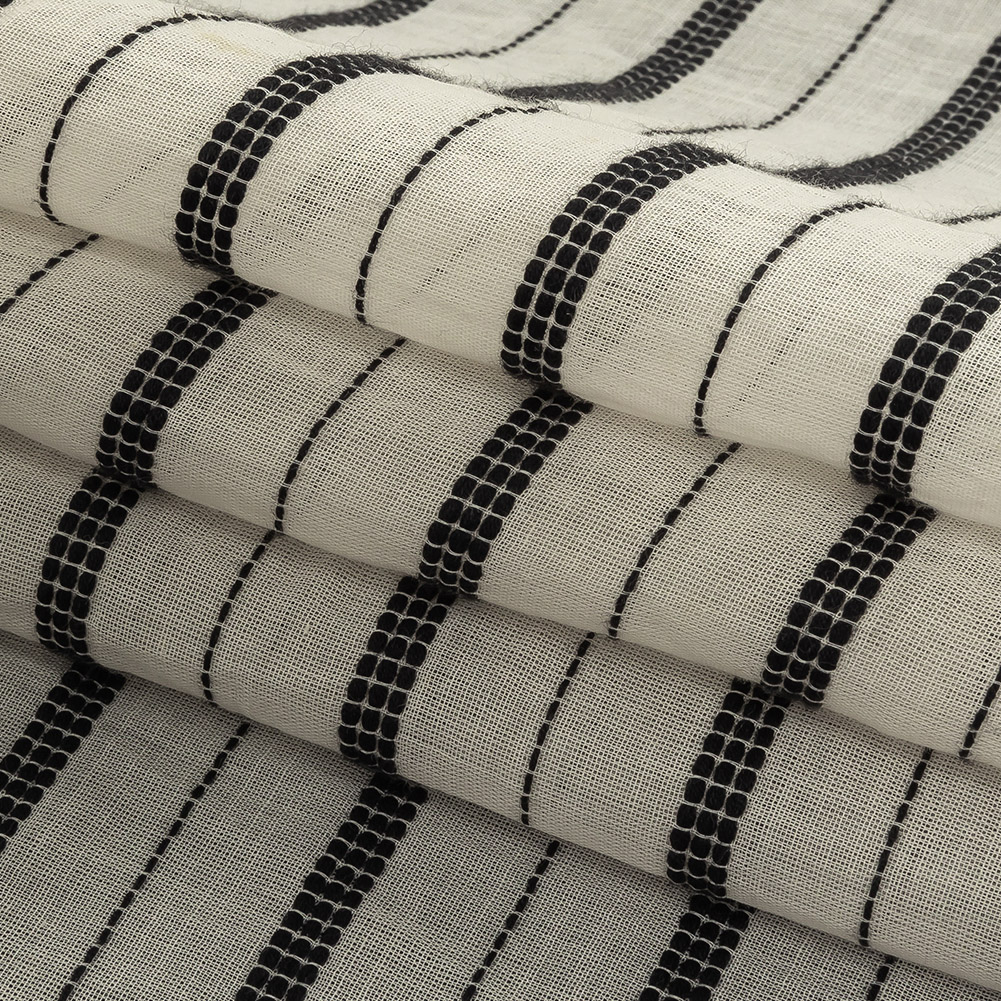Pinstripes came about during the industrial era and are usually associated with bankers, financiers, and those of a similar ilk. Today, they are used more casually and in different environments—making our Famous Australian Designer Ivory Cotton Voile with Phantom Woven Pinstripes a versatile option for your designs. Contrasting rows of thick and thin stripes span the face of this fabric. It has an airy flexible drape and a light textured hand. The cotton voile construction gives it a summery energy, so consider crafting a button-downs for resort evenings as a nod to the original pinstripe, some wide-legged pants with a short lining to wear poolside for an upscale peek-a-boo look, or an oversized blouse. Given its sheer nature, you might want to use a lining—but if you want to incorporate a see-through element into your designs, this material would be the perfect touch.