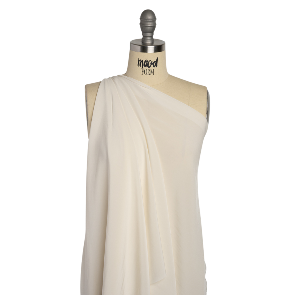 An air of romance carries this Famous Australian Designer Ivory Viscose Crepe de Chine into your wardrobe. A lustrous ivory face proves to be the perfect companion to a fluid drape and silky smooth hand, conjuring up an allure of elegance that accompanies you to galas, work days, and dinners-for-two. Dream up cowl-neck dresses, maxi skirts, and simple button-ups, or use this semi-sheer fabric as a lining for blazers and gowns.