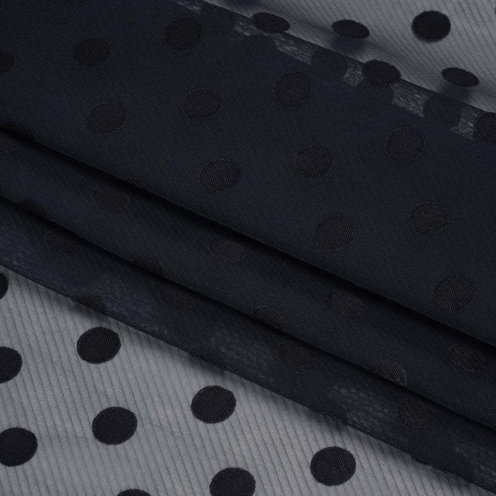 Famous Australian Designer Navy Polyester Chiffon with Satin Burnout Polka Dots