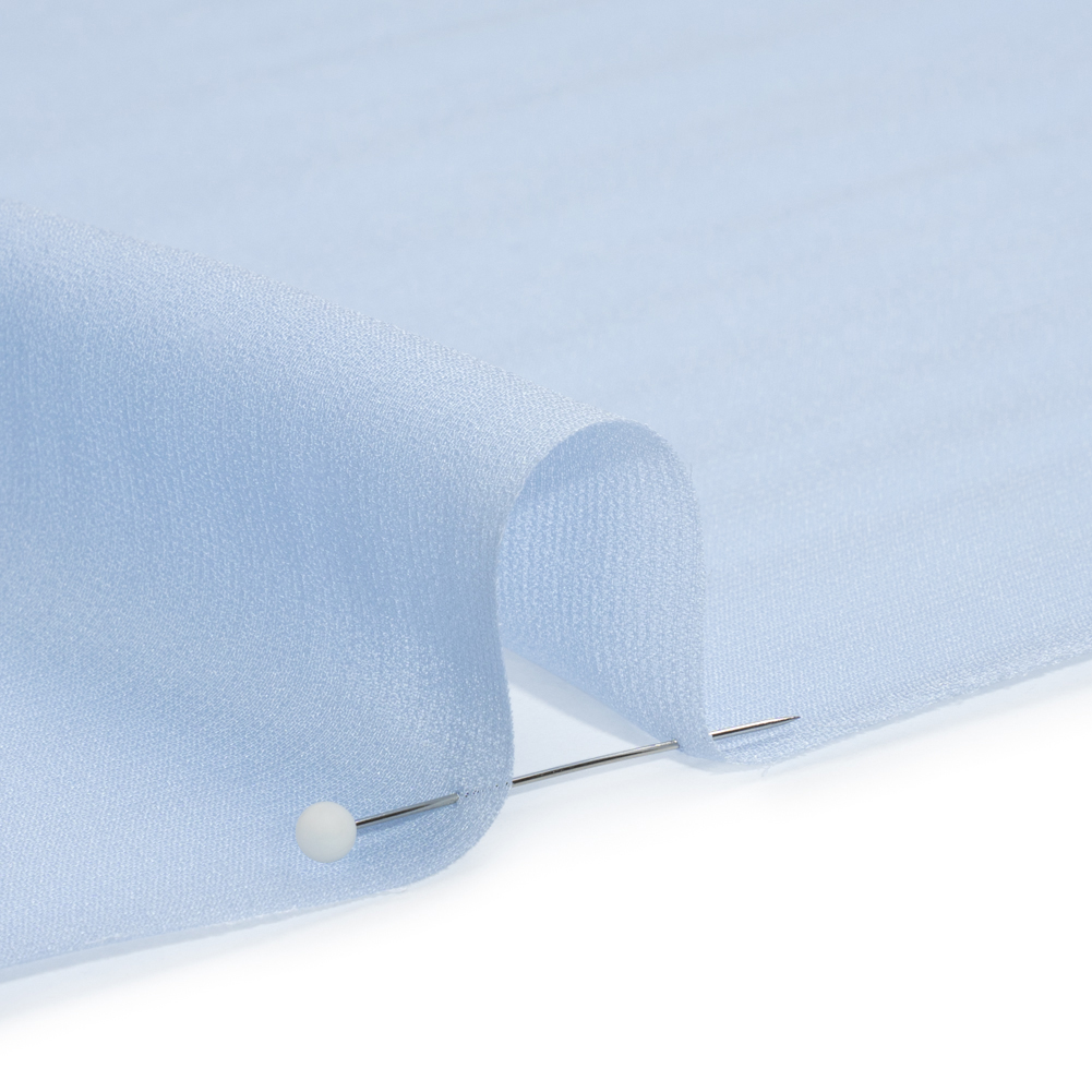 This gentle Famous Australian Designer Pale Blue Viscose Georgette captures the essence of tranquility. From weddings to brunches, cold weather to warm, this pale blue georgette casts an ethereal aura over semi-casual and formal occasions, delivering a soft yet grainy hand for a modest touch of texture. Ideal for layering, pleating, and accentuating your figure, its airy drape inspires romantic gowns, workplace dresses, flowing pants, scarves, and more! This slightly lustrous and translucent fabric is beautiful as an overlay, with a lining, or as a stand-alone sheer garment.