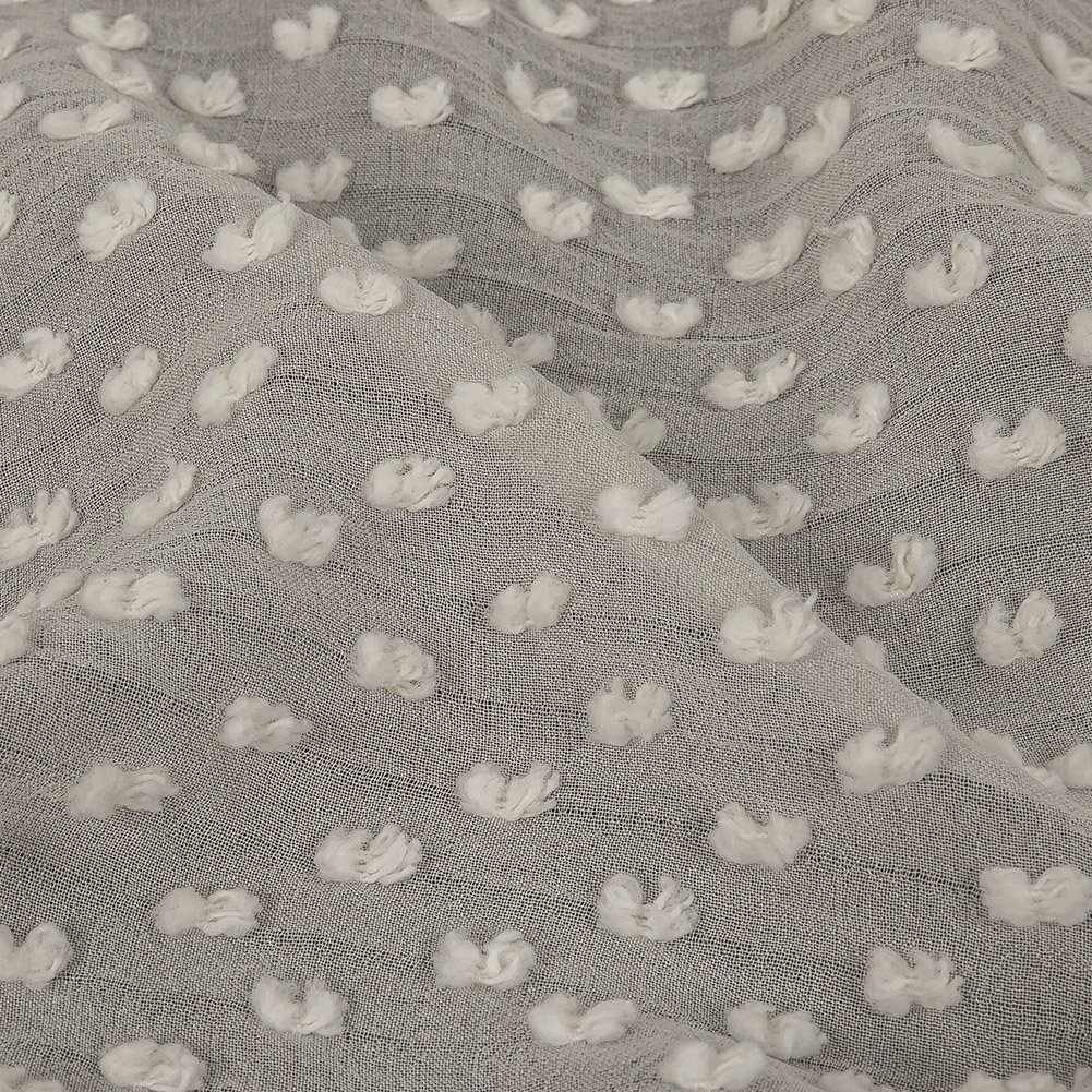 Our Famous Australian Designer Pearl Faux Swiss Dot Silk Georgette will have you feeling like a sky full of nimbus clouds.