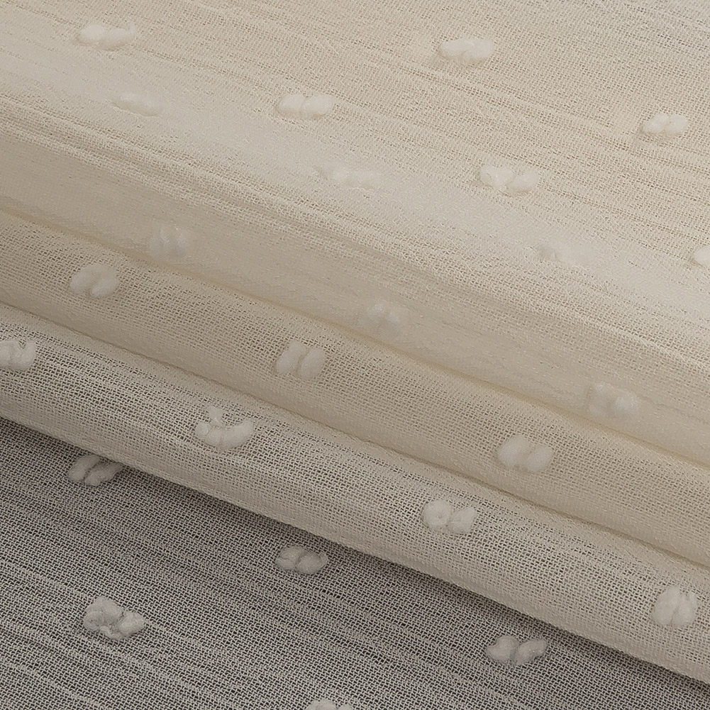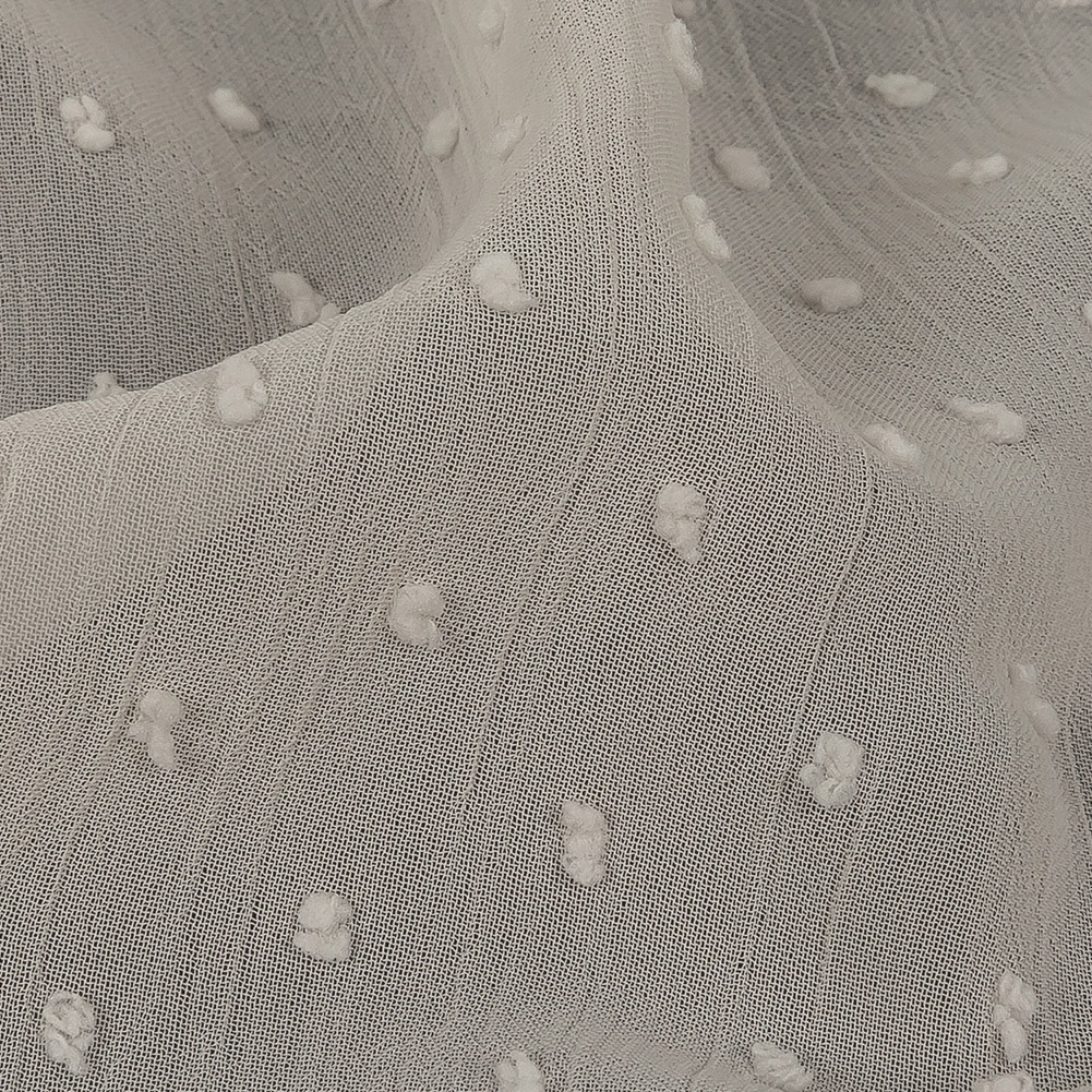 Tufted dots, crinkles, and crisp Georgette? Our Famous Australian Designer Pearl Imitation Swiss Dots Crinkled Polyester Georgette is tactility galore.