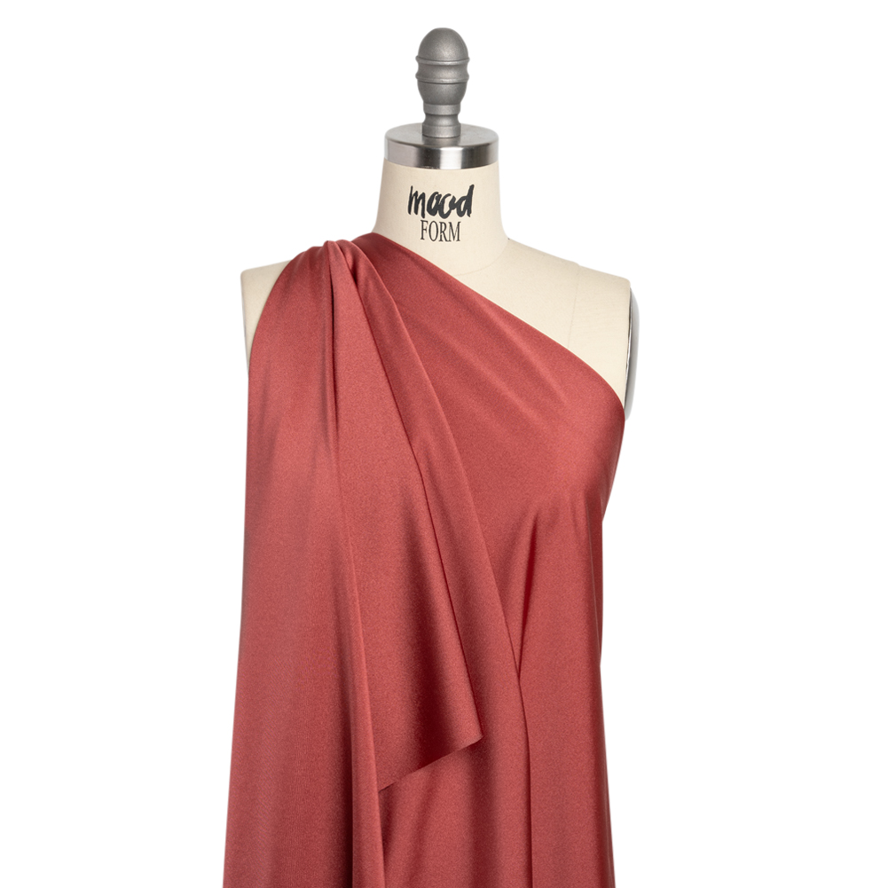 You’re a star in this Famous Australian Designer Red Shimmering Stretch Polyamide Tricot! Characterized by a unique weave, tricots feature a slightly (slightly!) textured face with a smoother reverse, with this one specifically yielding a maroon color, fluid drape, and 60% all-way stretch.