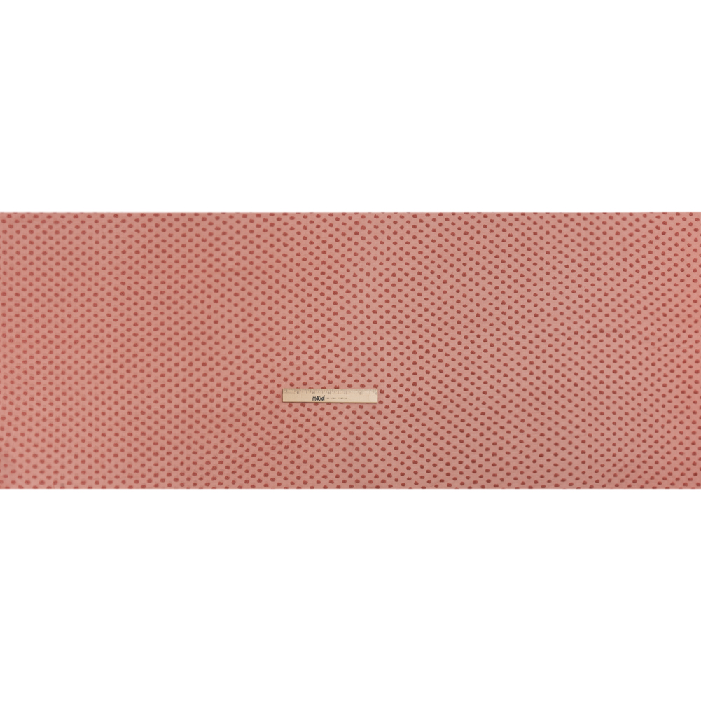 Sound the alarms, this Famous Australian Designer Rose Silk Swiss Dot Georgette indicates that there's a new sewing obsession on the horizon! On the crisp, grainy hand of a dusty rose georgette, raised dots deliver the texture and the energy that your wardrobe desires. Bad days begone with a polka dot pattern, sending a wave of playful energy to your once-drab blouses, dresses, and maxi skirts. Semi-sheer and featuring a supple drape, this swiss-dot fabric works perfectly as an overlay, paired with a lining, or as a stand-alone sheer garment.