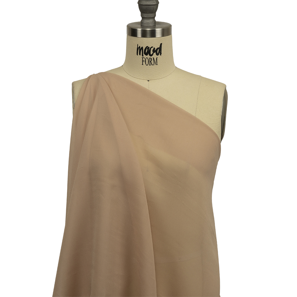 Acres of sand on a warm, sunny day sounds like the inspiration for this Famous Australian Designer Sand Viscose Georgette. Warm beige overtakes this crepe-like material with its delicately thin texture. This material provides a crisp, tactile hand as well as a bit of mechanical give. Billowy in drape, design whimsical special occasion dresses with flowing skirts and capes, or craft beach coverups, blouses, and flirty draped skirts! Fairly sheer, we highly recommend a lining for opacity and structure where desired.