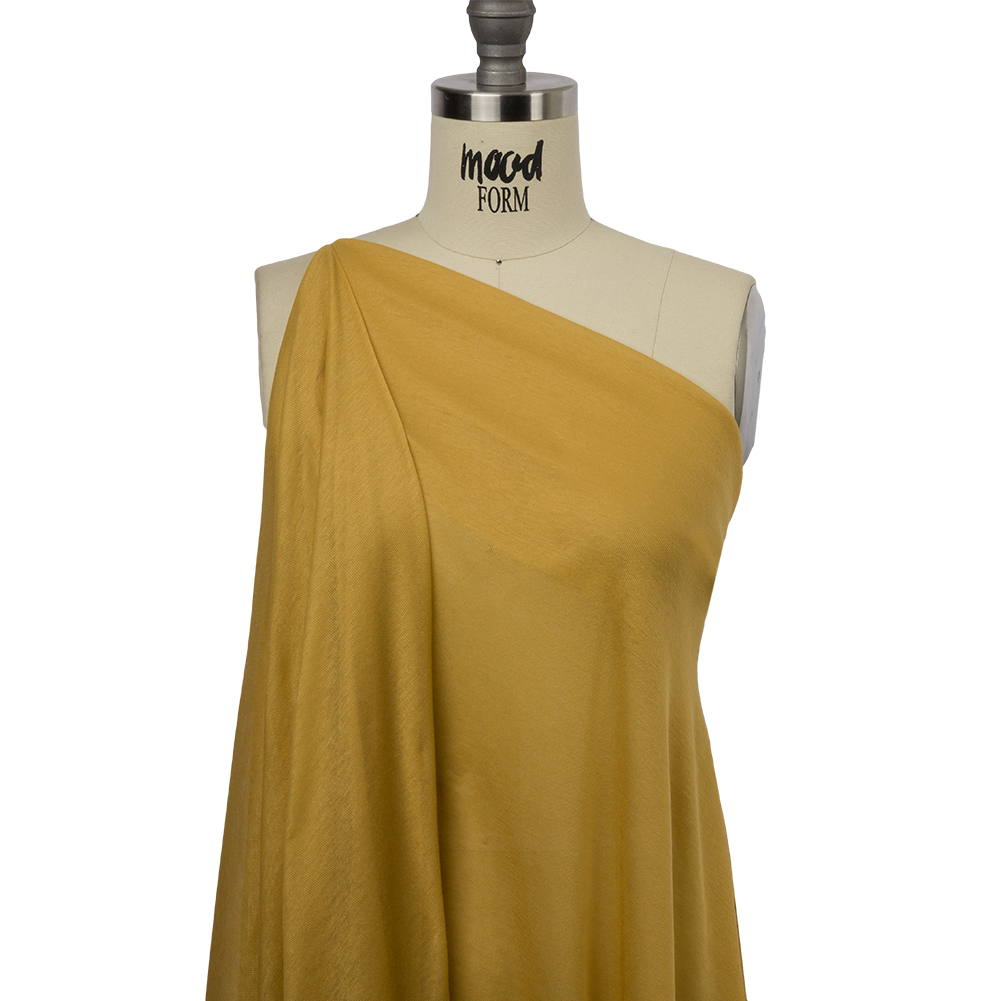 Add some sunshine to your project with this Famous Designer Goldenrod Viscose and Cotton Lightweight Interlock Knit.