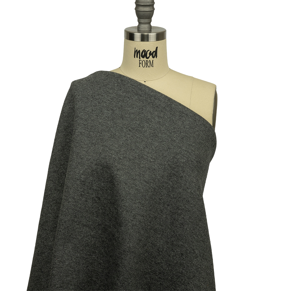 You'll fall in love with this Famous Designer Heathered Gray Blended Wool Double Knit, perfect for autumn makes! Composed of two cozy layers of a crisp heathered gray knit, this material features a flexible drape and slight all-way stretch. Design sturdy cardigans, opera coats, wintry skirts, sweater dresses, and more. Opaque, a lining is not necessary for most applications.