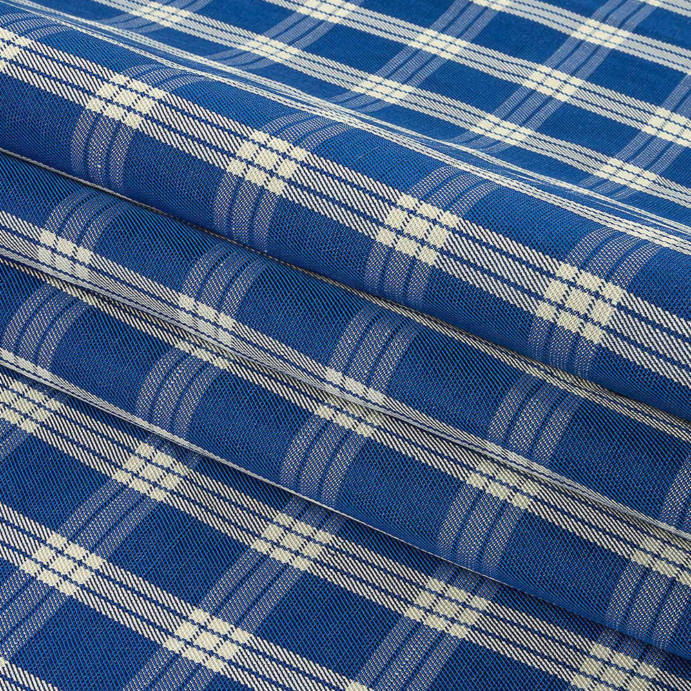 Famous Designer Italian Blue and White Plaid Viscose and Linen Woven