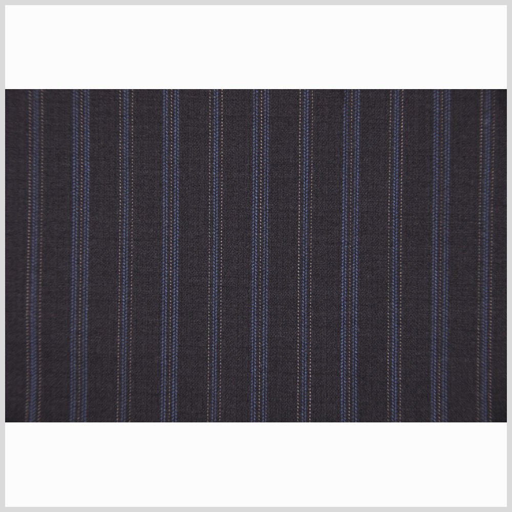Dress to impress in this Famous NYC Designer Italian Charcoal and Blue Striped Herringbone Wool Suiting! Thin blue and pale gray pinstripes run in alternating sections of four and five stripes, bound by charcoal gray with a subtle zig-zag pattern thanks to the herringbone weave pattern. Smooth and crisp with a soft, flexible drape, craft classic suits or sleek separates, perfect for any weather thanks to wool's insulative properties. A lining may be added for a professional finish or to ensure complete opacity, as some light does come through this fabric.