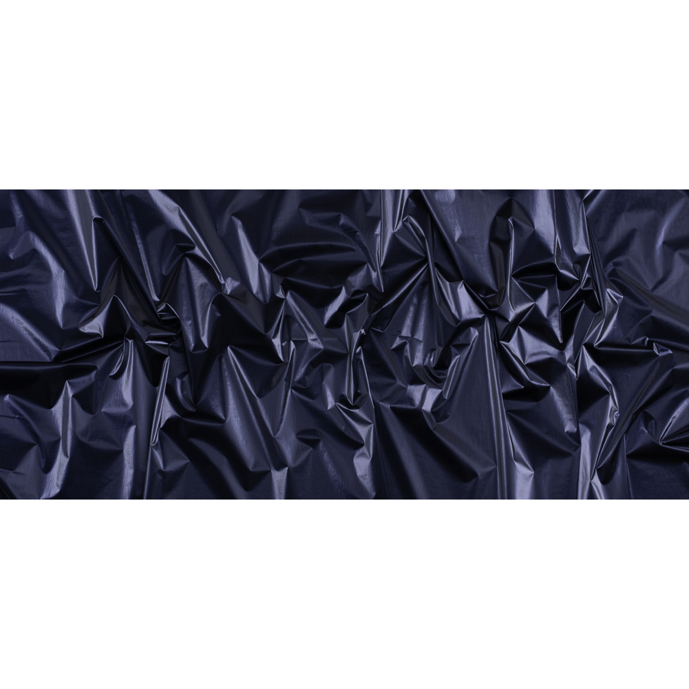 There are no ifs, ands, or navy’s when you’re working with this Navy Faux Tyvek—featuring an ultra-smooth, sleek hand and crisp yet flexible drape.Suggested Projects: Jackets, Bags, Wallets, PantsContent: 100% Polyurethane, 100% NylonStretch: NoneOpacity: Mostly OpaqueLooking for the Tyvek finish without the price tag? This navy blue faux Tyvek is your answer. Composed of polyurethane and nylon, this material boasts a lightweight and crisp yet still flexible drape, water resistance, and tear resistance—akin to its branded counterpart. With a smooth, sleek hand and glossy finish, craft windbreakers that bring futuristic fashion to the forefront, lightweight yet durable bags and wallets, and parachute pants ideal for both nightlife and outdoor adventures. Part of the Greta Collection, this faux Tyvek comes in a range of colors and finishes, so you’re sure to find the perfect hue and shine for your next project. WARNING: Cancer and Reproductive Harm - www.P65Warnings.ca.gov.