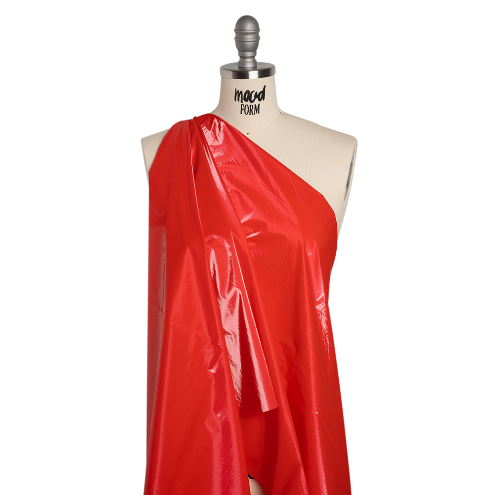 People will stop and stare at this Red Faux Tyvek—featuring an ultra-smooth, sleek hand and crisp yet flexible drape.Suggested Projects: Jackets, Bags, Wallets, PantsContent: 100% Polyurethane, 100% NylonStretch: NoneOpacity: Slightly TranslucentLooking for the Tyvek finish without the price tag? This bright red faux Tyvek is your answer. Composed of polyurethane and nylon, this material boasts a lightweight and crisp yet still flexible drape, water resistance, and tear resistance—akin to its branded counterpart. With a smooth, sleek hand and glossy finish, craft windbreakers that bring futuristic fashion to the forefront, lightweight yet durable bags and wallets, and parachute pants ideal for both nightlife and outdoor adventures. Part of the Greta Collection, this faux Tyvek comes in a range of colors and finishes, so you’re sure to find the perfect hue and shine for your next project. WARNING: Cancer and Reproductive Harm - www.P65Warnings.ca.gov.