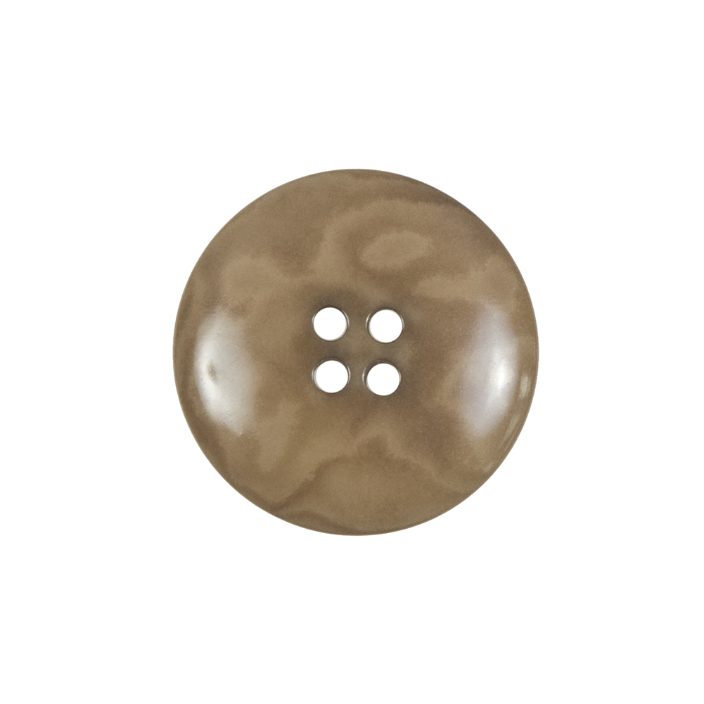 Mood has an eclectic collection of buttons to take your project to the next level. Here we have a round horn button featuring a raised rim, a flat face, and four centered holes. This specific style of button is available in sizes 15mm and 23mm. Mood has invested in a wide variety of horn buttons in all sorts of shapes, patterns, and sizes. Great for adding interest to any article of outerwear or accessory, and the best part is that no two horn buttons are identical!