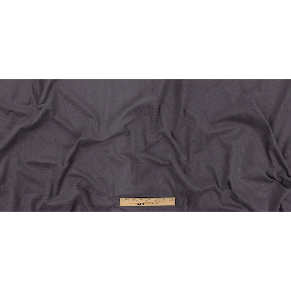 With a color lying somewhere between purple and gray, this Ironwood Featherwale Cotton Corduroy is unique. Made of 100% combed cotton, it boasts a soft, lightly fuzzy hand upon its classic ribbed design. For those unfamiliar with the term "featherwale", it refers to the thinness of the cords. This particular collection holds 21 wales per inch. Thin and lightweight, it has a stiffer drape that lends itself to tailored designs. We see retro buttoned shirts, cuffed shorts and simple dresses. Translucent, insert a lining for more opacity.Please Note: The dye lot of this fabric has changed as of October 2025. If you had previously ordered this material, please order a swatch to ensure the new dye lot meets your color requirements.