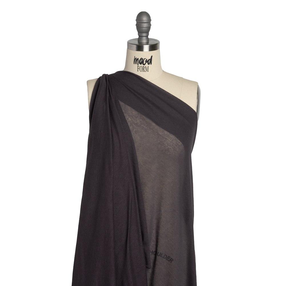 Transport yourself to a land of mystics and magic with this Dark Purple Lightweight Cotton Interlock Knit, featuring a soft hand, extremely generous stretch, and airy, flexible drape.Suggested Projects: Shirts, Dresses, Shorts, Lightweight PajamasContent: CottonStretch: 100% WeftwiseOpacity: TranslucentThis cotton knit evokes images of tarot cards, crystal balls, and dimly lit salons wafting with the intoxicating scent of incense. Exceptionally lightweight, this knit features a super-soft hand and an airy, flexible drape. With a 100% stretch through the weft, create billowing dresses with gathered skirts, comfy summer pajama sets, and wide-legged jumpsuits. Translucent, self-lining or layering is recommended for opacity where desired.