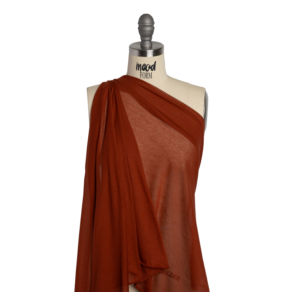 Ply pottery designs from clay with this Dark Orange Featherweight Rayon Jersey, featuring a soft hand and supple, airy drape.