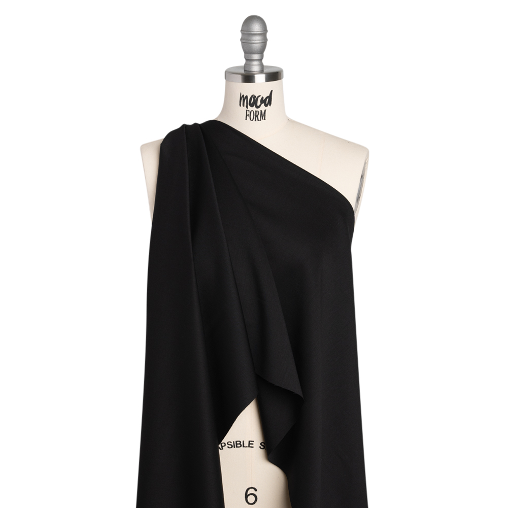 From days in the office to nights on the town, this Black Fine Wool Twill Suiting is ready to follow wherever you may lead. With a soft, smooth hand and fluid drape, it’ll make a fine addition to your wardrobe.Suggested Projects: Pants, Skirts, Dresses, JacketsContent: 100% WoolStretch: NoneOpacity: Slightly TranslucentMeld the business look with the casual feel in this fine twill suiting. Complete with a durable wool construction, this black fabric has a fluid drape and soft, smooth hand that lends itself well to structured applications. Create tailored jackets, trendy blazer dresses, pleated skirts, straight-leg trousers, and so much more! Slightly translucent, we recommend incorporating a lining for comfort, dimensional stability, and aid in preventing the fine yarns from unraveling at the seams.