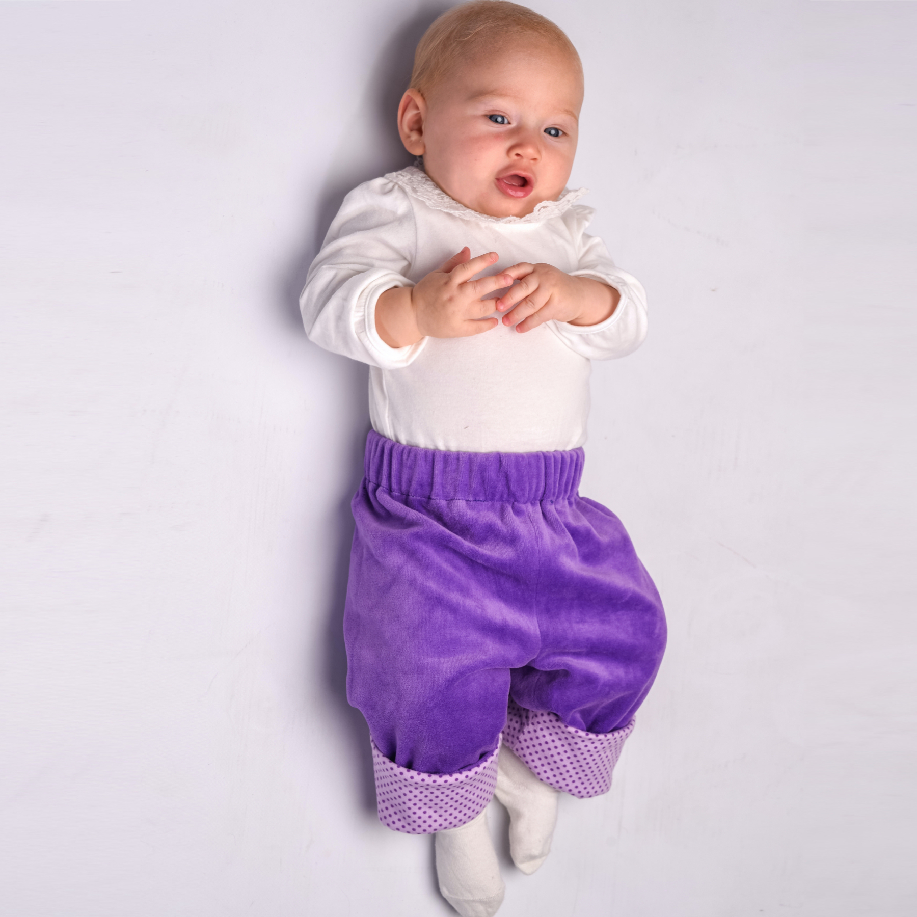 Sew adorable and comfy baby pants with the FIORETTO reversible pants sewing pattern PDF! This easy-to-use pattern lets you create stylish and practical trousers for everyday wear – perfect for babies and toddlers.