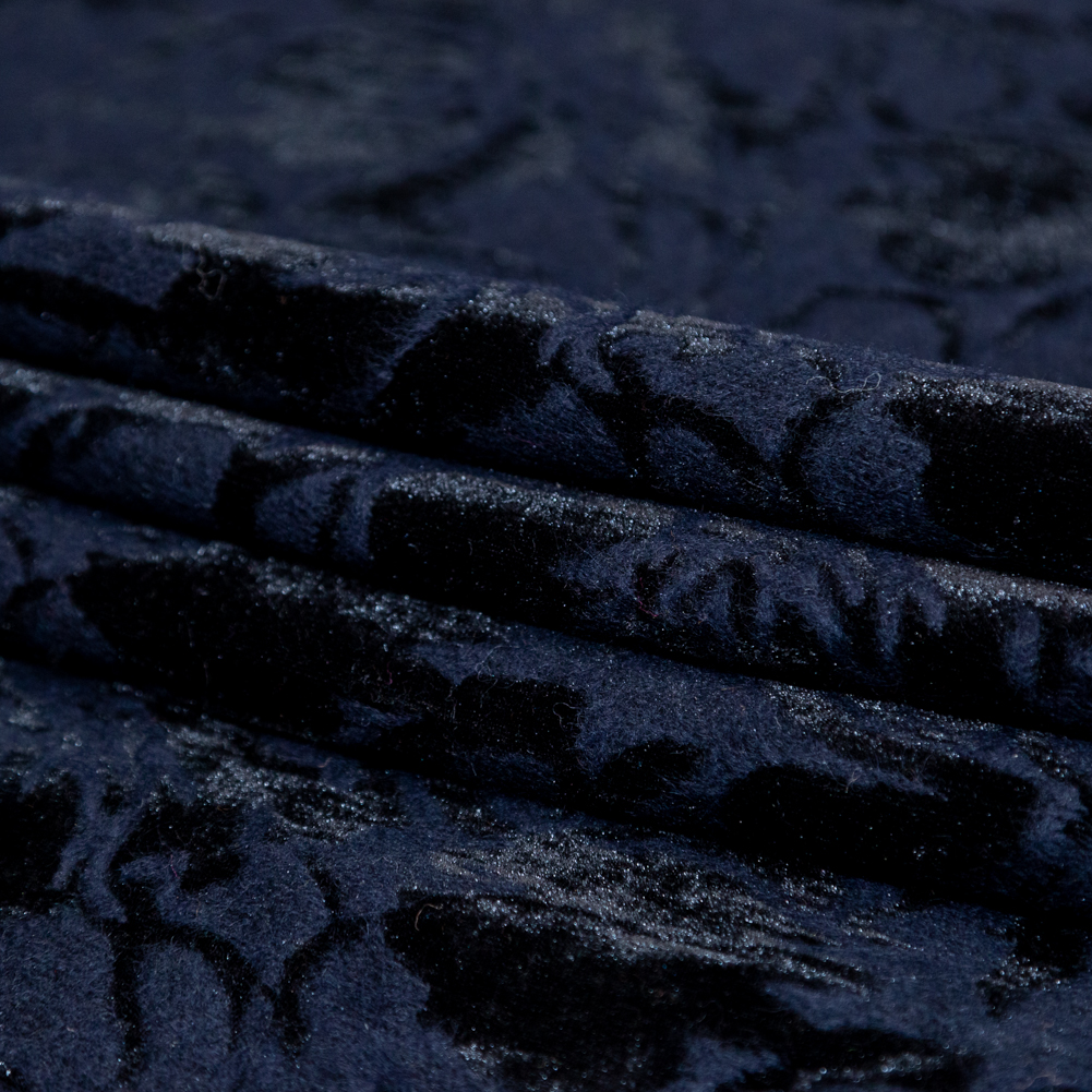 Floral Bonded Wool Knit and Velour – Navy and Black