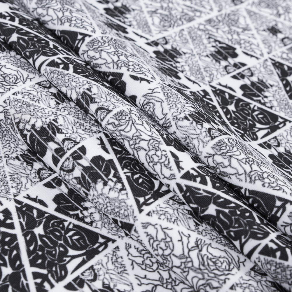 Designed by Celeste Jennings, who was the first winner of our #neoprenedesignchallenge on social media, we present to you a spectacular monochromatic print of floral imagery enclosed within evenly placed triangles.