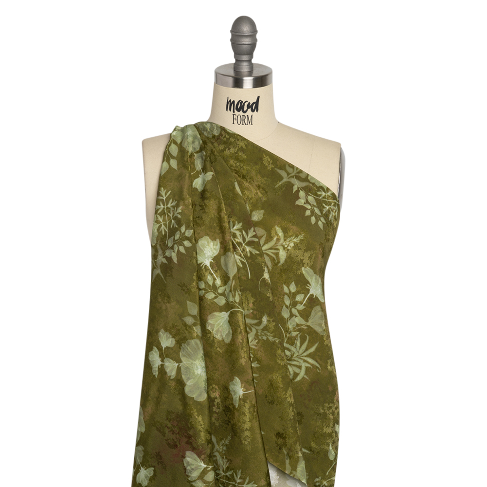 Floral Viscose Jacquard Print - Olive Green Leafy Floral - Mood Exclusive Willow Wanderer
