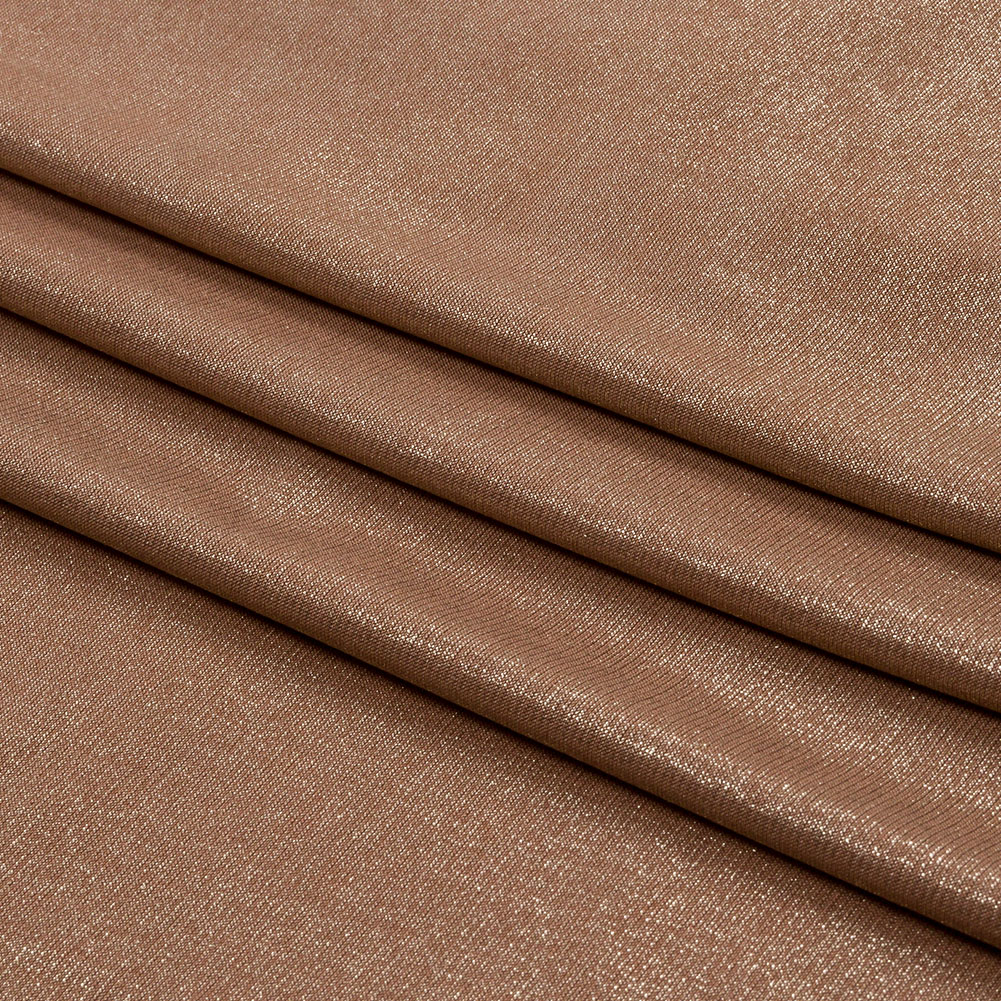 This Gaby Camel and Gold Foiled ITY Interlock Knit is the perfect shade for all your sewing needs. ITY is short for ‘interlock twist yarns', which add coolness and exceptional softness to the fabric they're included in. This particular knit features a super-soft hand, a slinky and supple drape, and a brilliant gold foiling across its face. With a generous 100% weftwise stretch, design flowing maxi dresses, effortless tunics, or close-fitting leggings and bodysuits. Opaque, a lining is not necessary for most projects.