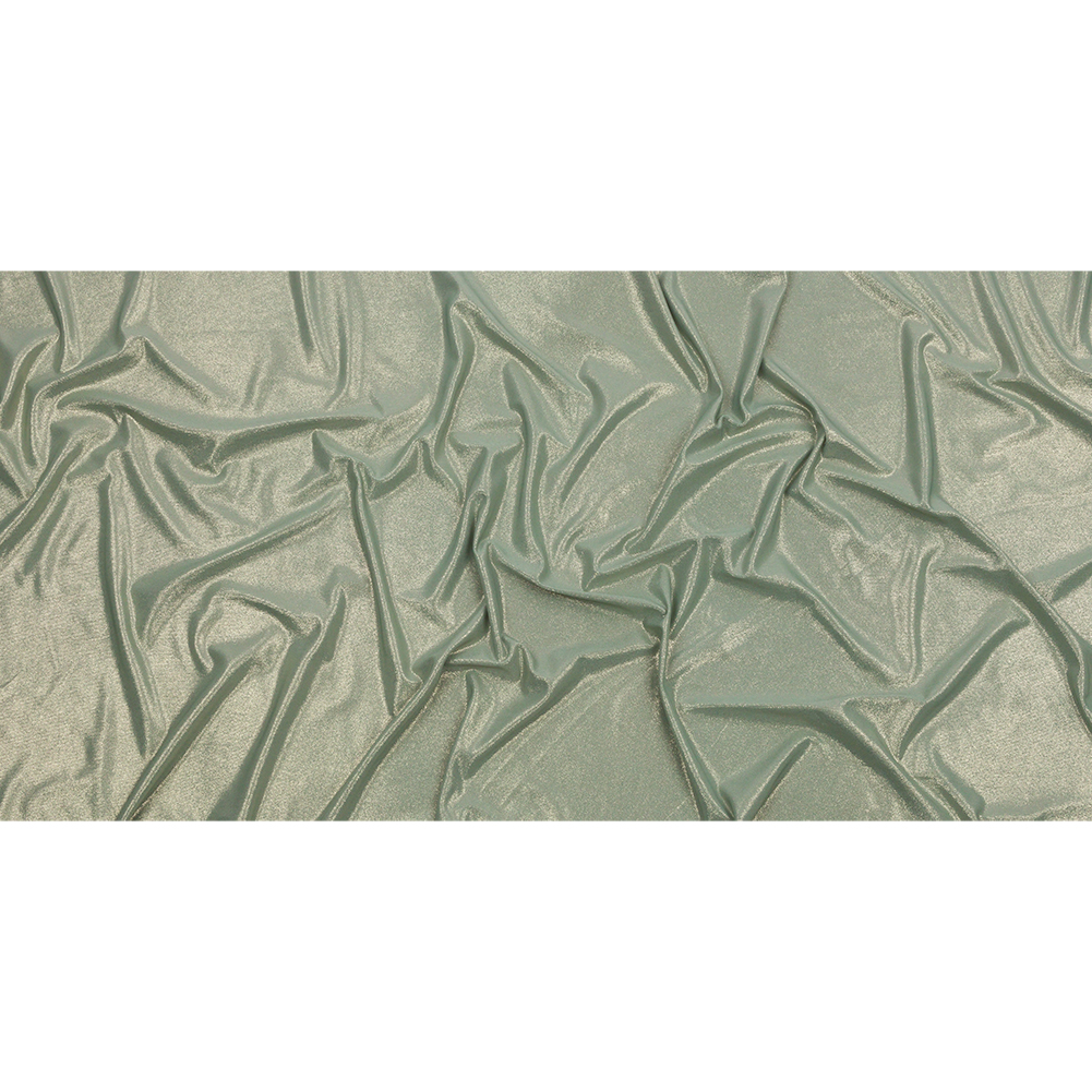 Find yourself within the beauty of this Gaby Green Bay and Gold Foiled ITY Interlock Knit. ITY is short for ‘interlock twist yarns', which add coolness and exceptional softness to the fabric they're included in. This particular knit features a super-soft hand, a slinky and supple drape, and a brilliant gold foiling across its face. With a generous 100% weftwise stretch, design flowing maxi dresses, effortless tunics, or close-fitting leggings and bodysuits. Opaque, a lining is not necessary for most projects.