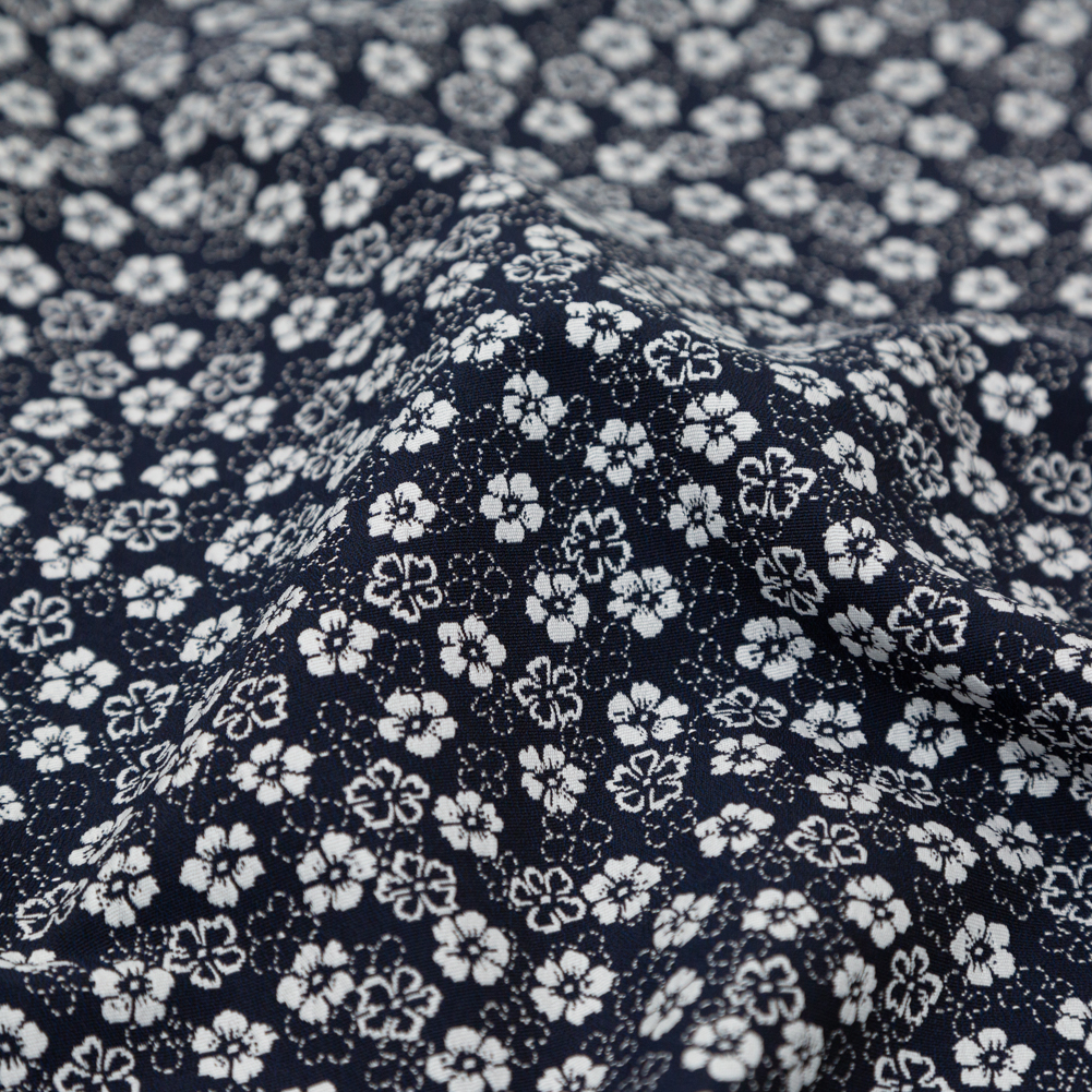 French Navy and White Floral Jacquard