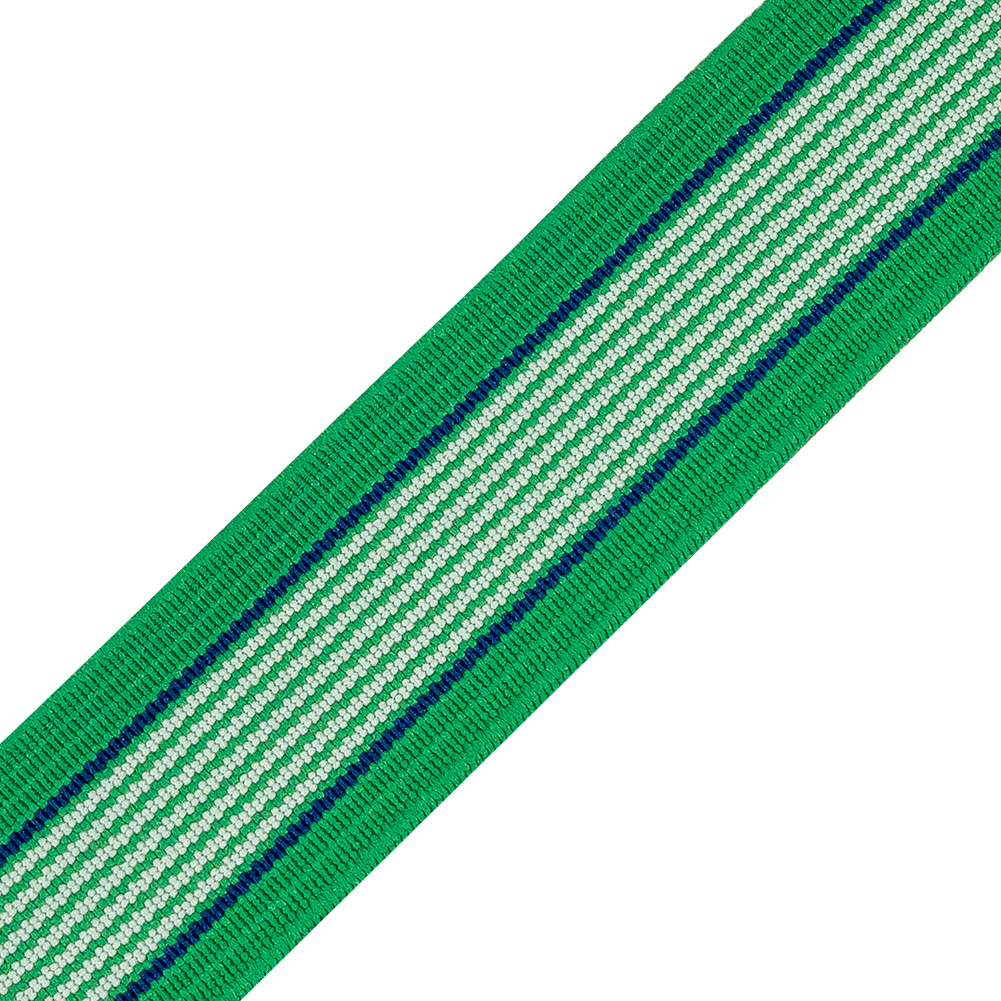 Give renewed vitality to sewing and home decor projects with the help of this Frosty Green, White and Blue Striped Elastic. Measuring in at 1", use its playful color scheme to style necklines and waistlines of garments, or to create eye-catching upholstery and drapery!