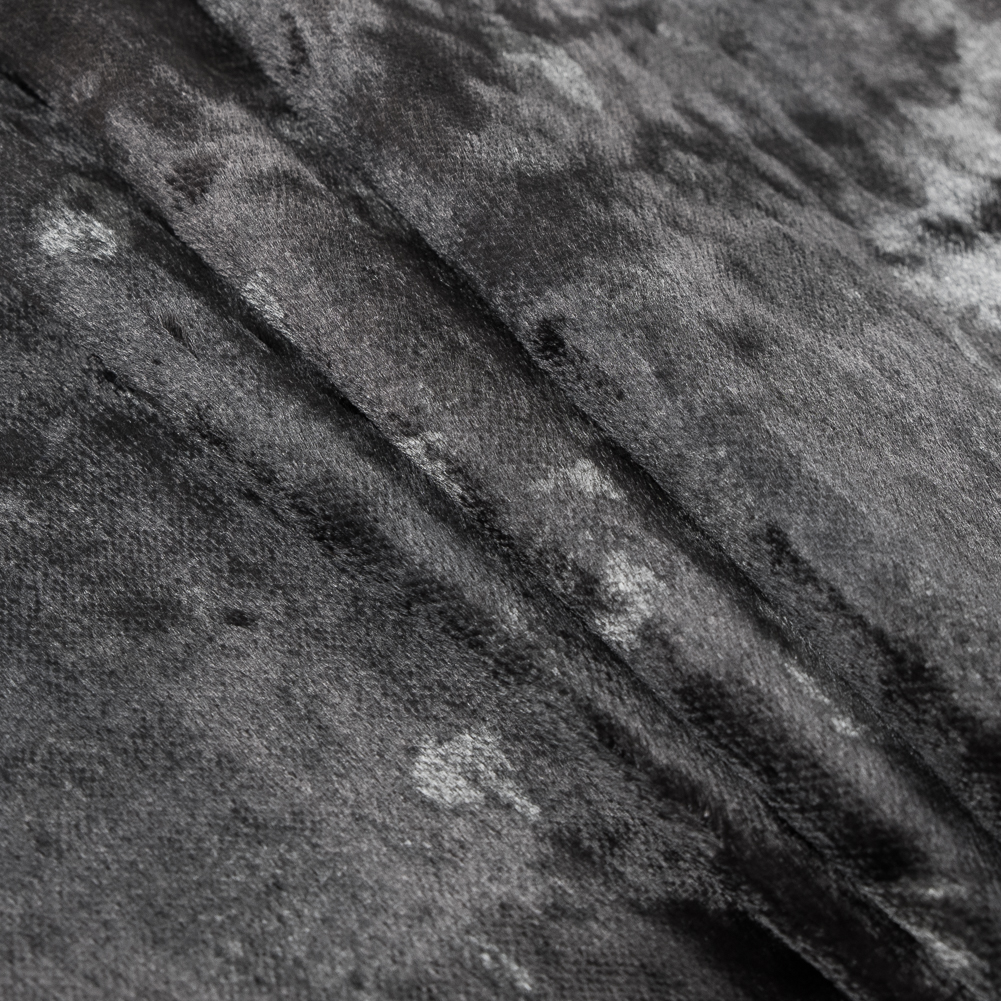 Luminous and spotted, integrate this Galaxy Gray Abstract Patterned Velvet into your home for a chic look. Darker tones in interior design create a sense of luxury and have the ability to make accent colors really pop. Light gray splatters over an immensely soft hand creating a weathered edge. Thin and of a medium weight, it is easily malleable for a number of upholstery applications. From Victorian lounge chairs to headboards, add texture and shine to your room.